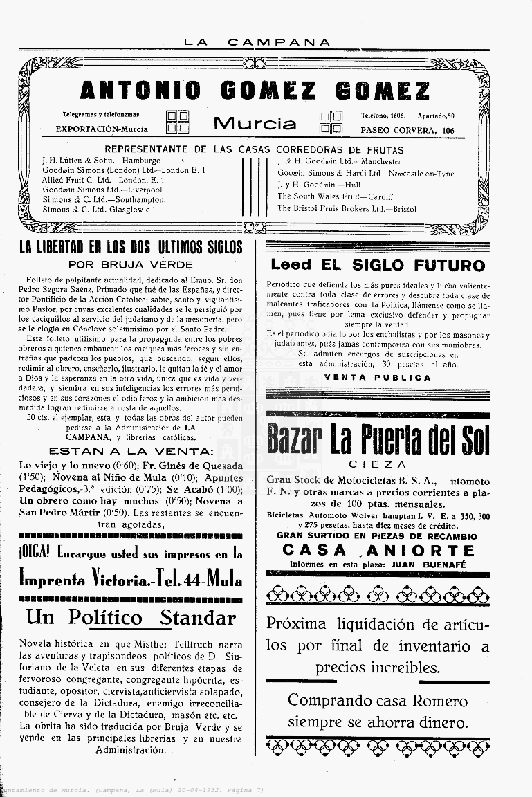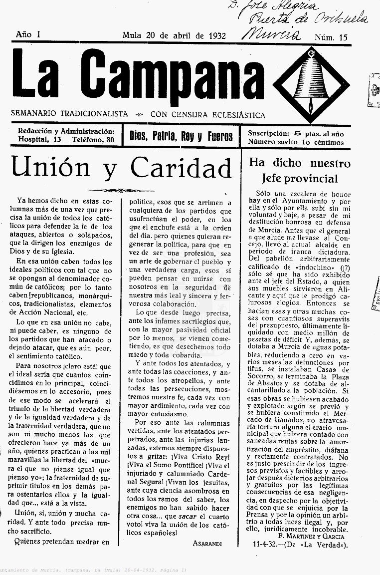 Periodico de Mula La Campana nº15 20 Abril de 1932 Periodico Muleño ,La CampanaArtículo AnteriorPeriodico de Mula La Campana nº16 27 Abril de 1932Artículo SiguientePeriodico de Mula La Campana nº14 13 Abril de 1932TipografíaMás PequeñaPequeñaMedianaGrandeMás GrandePredeterminadaHelveticaSegoeGeorgiaTimesModo LecturaCompartirArtículo AnteriorPeriodico de Mula La Campana nº16 27 Abril de 1932Artículo SiguientePeriodico de Mula La Campana nº14 13 Abril de 1932