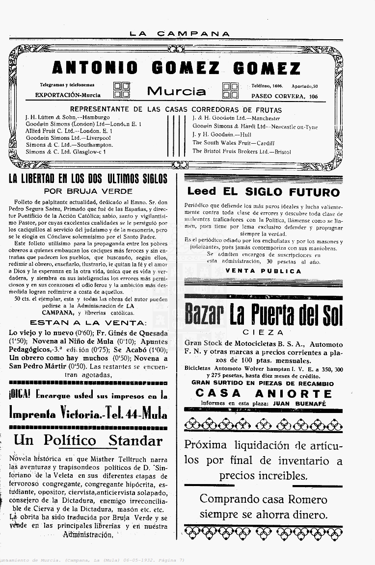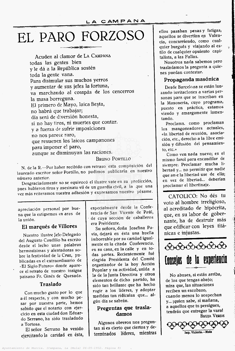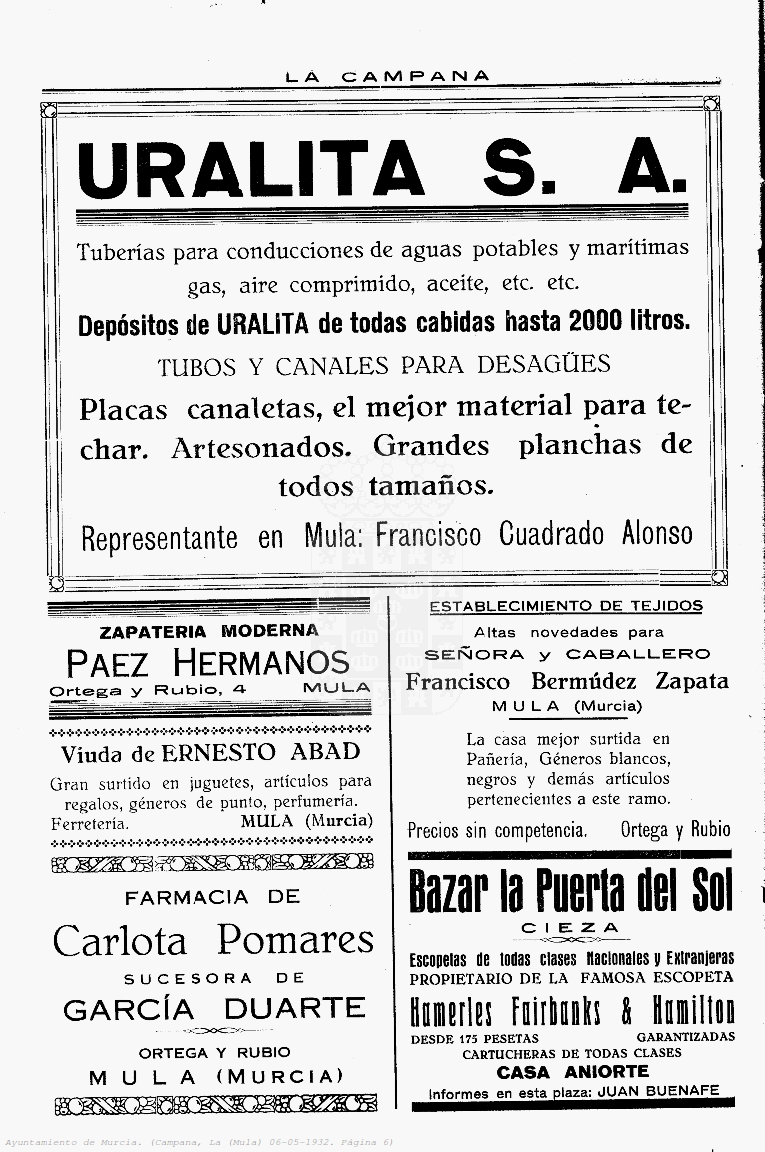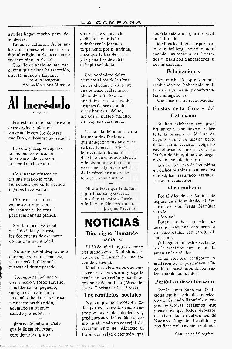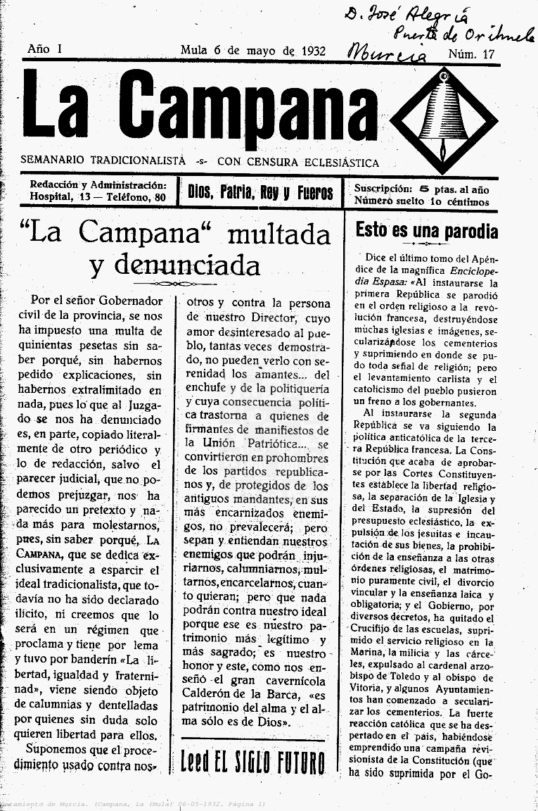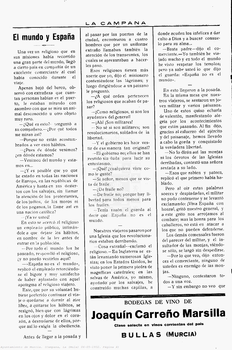 Periodico de Mula La Campana nº17 6 Mayo de 1932 Periodico Muleño ,La CampanaArtículo AnteriorPeriodico de Mula La Campana nº18 13 Mayo de 1932Artículo SiguientePeriodico de Mula La Campana nº16 27 Abril de 1932TipografíaMás PequeñaPequeñaMedianaGrandeMás GrandePredeterminadaHelveticaSegoeGeorgiaTimesModo LecturaCompartirArtículo AnteriorPeriodico de Mula La Campana nº18 13 Mayo de 1932Artículo SiguientePeriodico de Mula La Campana nº16 27 Abril de 1932