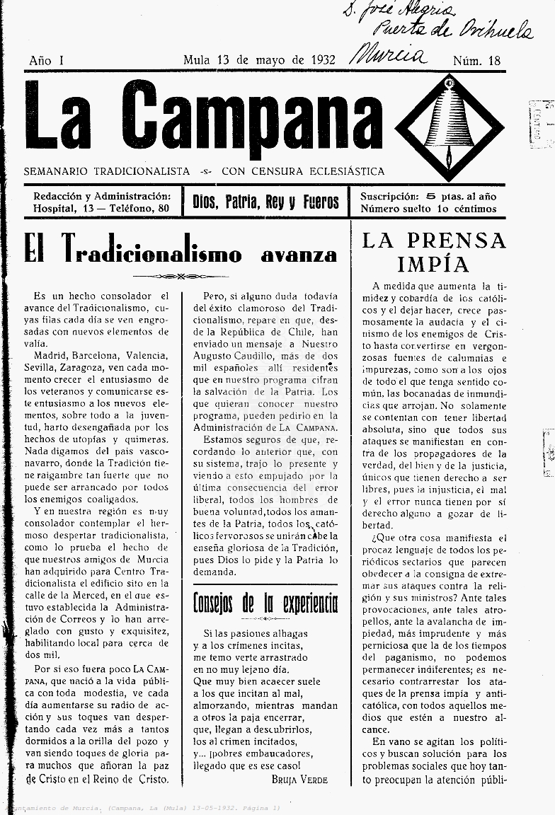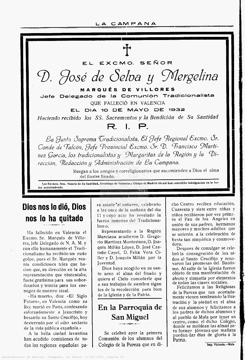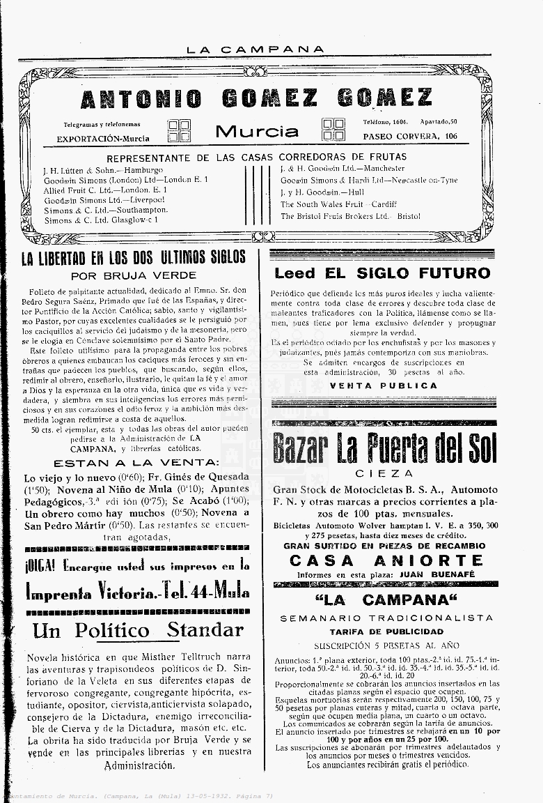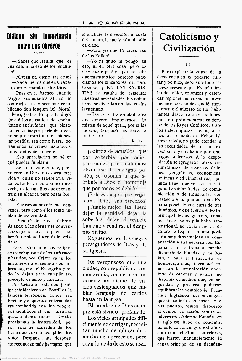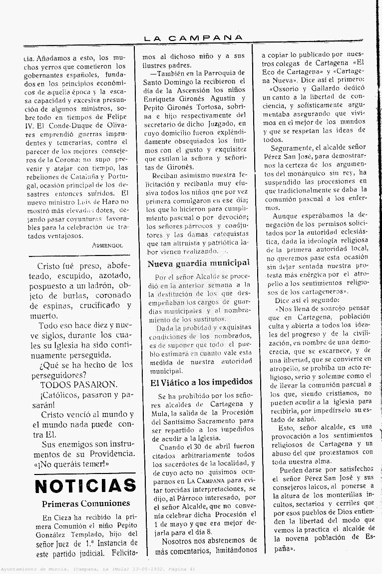 Periodico de Mula La Campana nº18 13 Mayo de 1932 Periodico Muleño ,La CampanaArtículo AnteriorPeriodico de Mula La Campana nº19 20 Mayo de 1932Artículo SiguientePeriodico de Mula La Campana nº17 6 Mayo de 1932TipografíaMás PequeñaPequeñaMedianaGrandeMás GrandePredeterminadaHelveticaSegoeGeorgiaTimesModo LecturaCompartirArtículo AnteriorPeriodico de Mula La Campana nº19 20 Mayo de 1932Artículo SiguientePeriodico de Mula La Campana nº17 6 Mayo de 1932