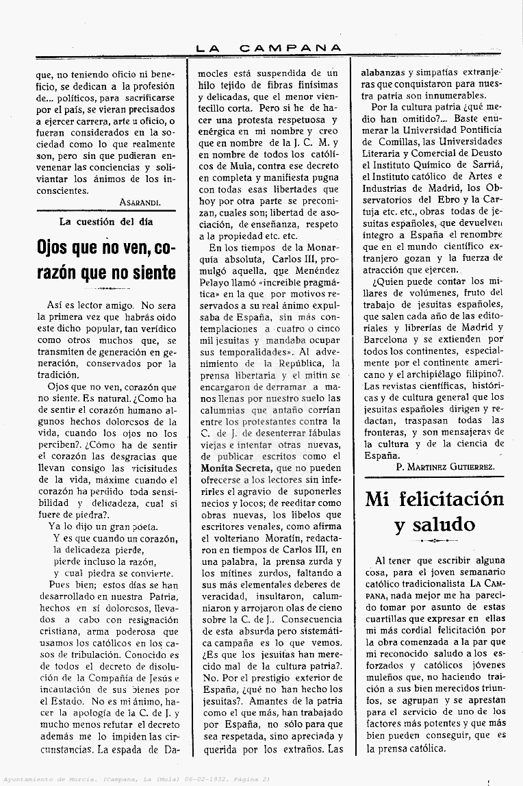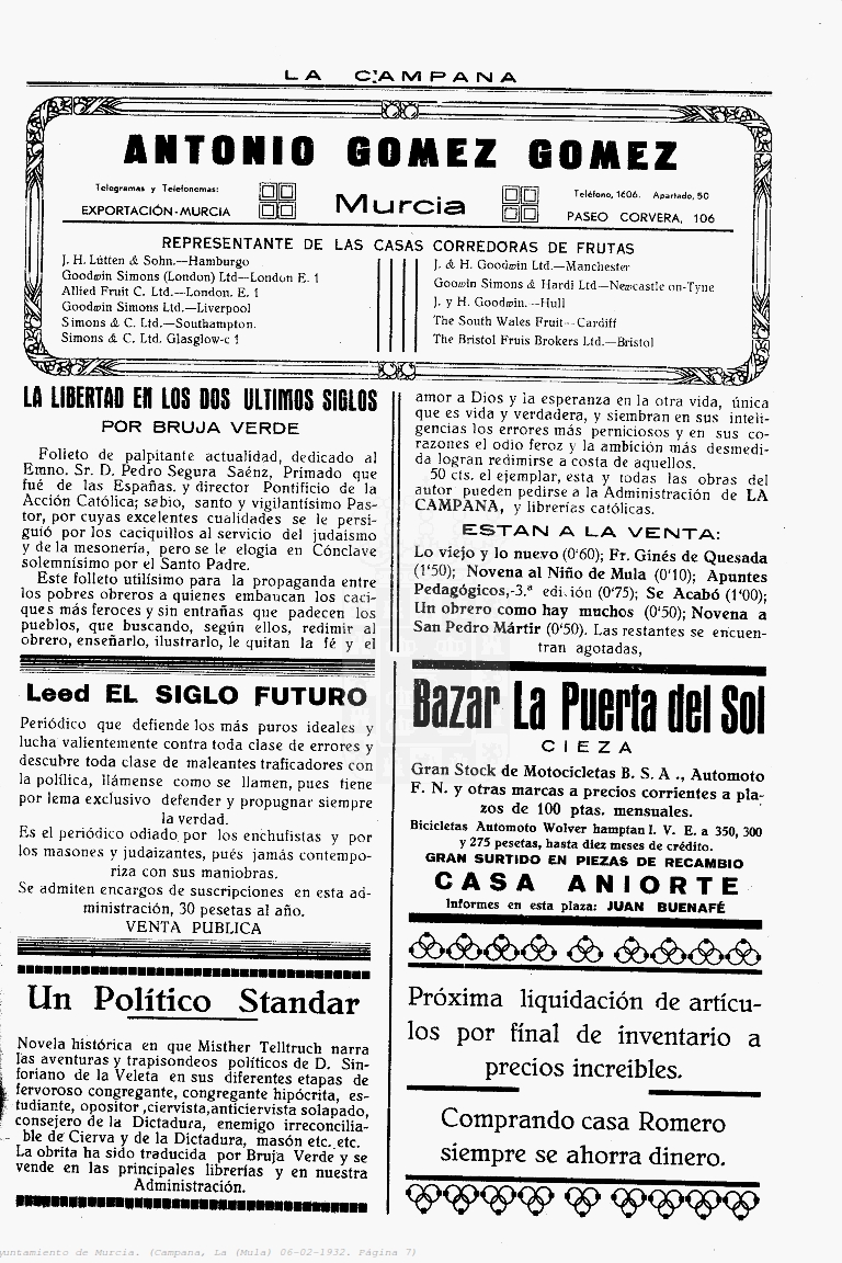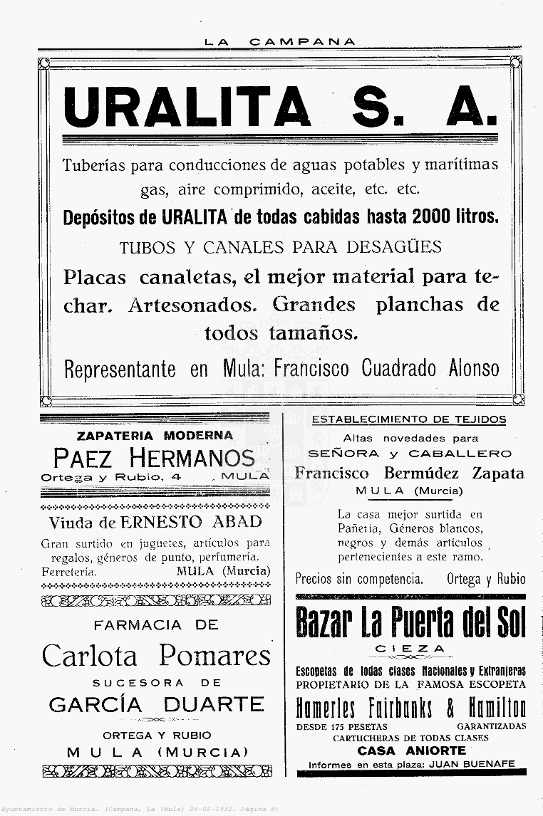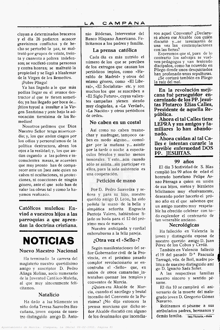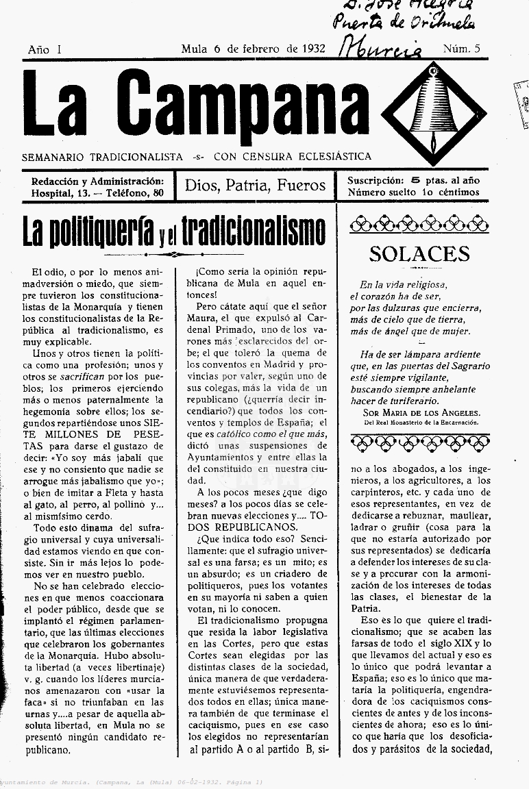 Periodico de Mula La Campana nº5 6 Febrero de 1932 Periodico Muleño ,La CampanaArtículo AnteriorPeriodico de Mula La Campana nº6 13 Febrero de 1932Artículo SiguientePeriodico de Mula La Campana nº4 27 Enero de 1932TipografíaMás PequeñaPequeñaMedianaGrandeMás GrandePredeterminadaHelveticaSegoeGeorgiaTimesModo LecturaCompartirArtículo AnteriorPeriodico de Mula La Campana nº6 13 Febrero de 1932Artículo SiguientePeriodico de Mula La Campana nº4 27 Enero de 1932