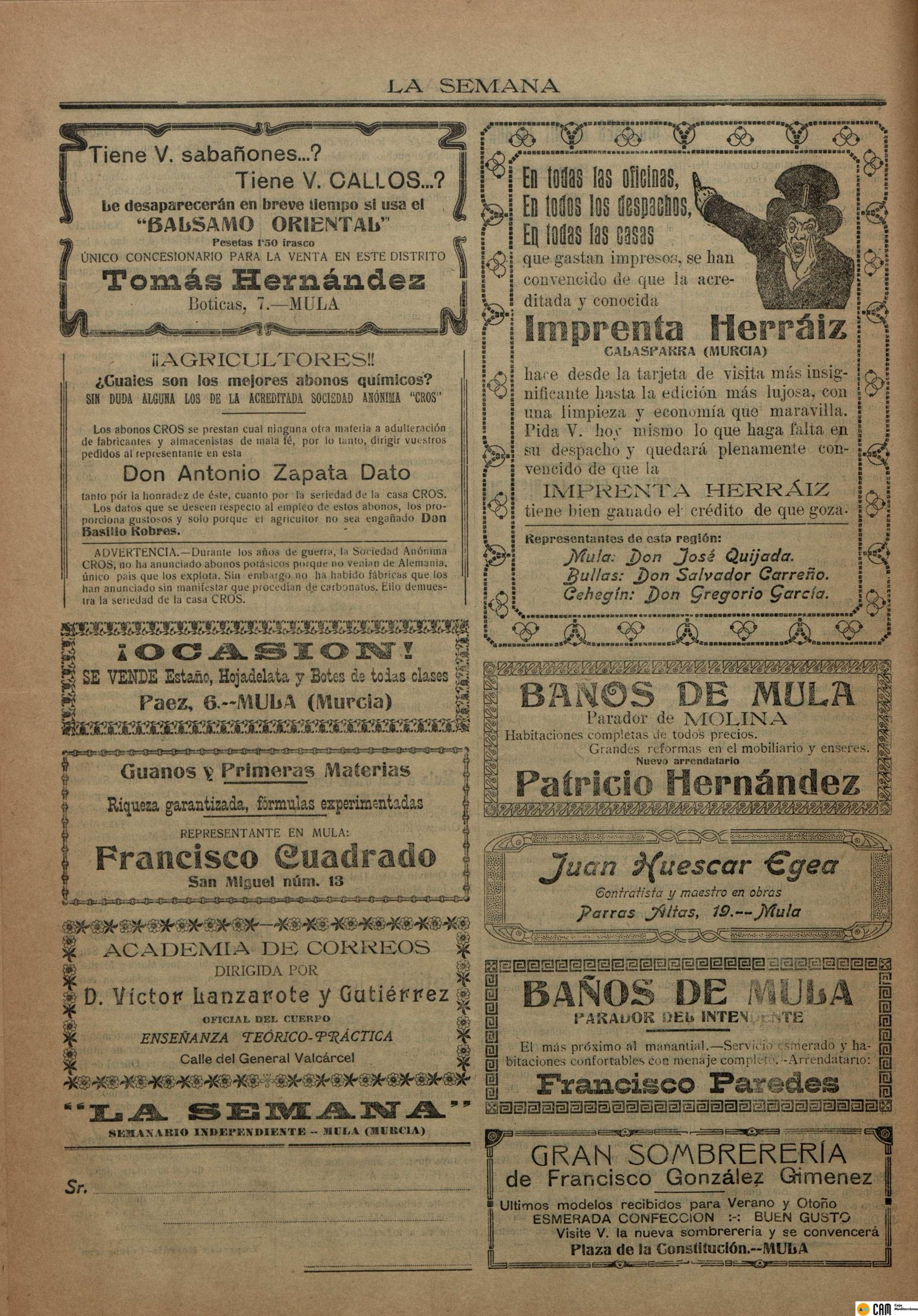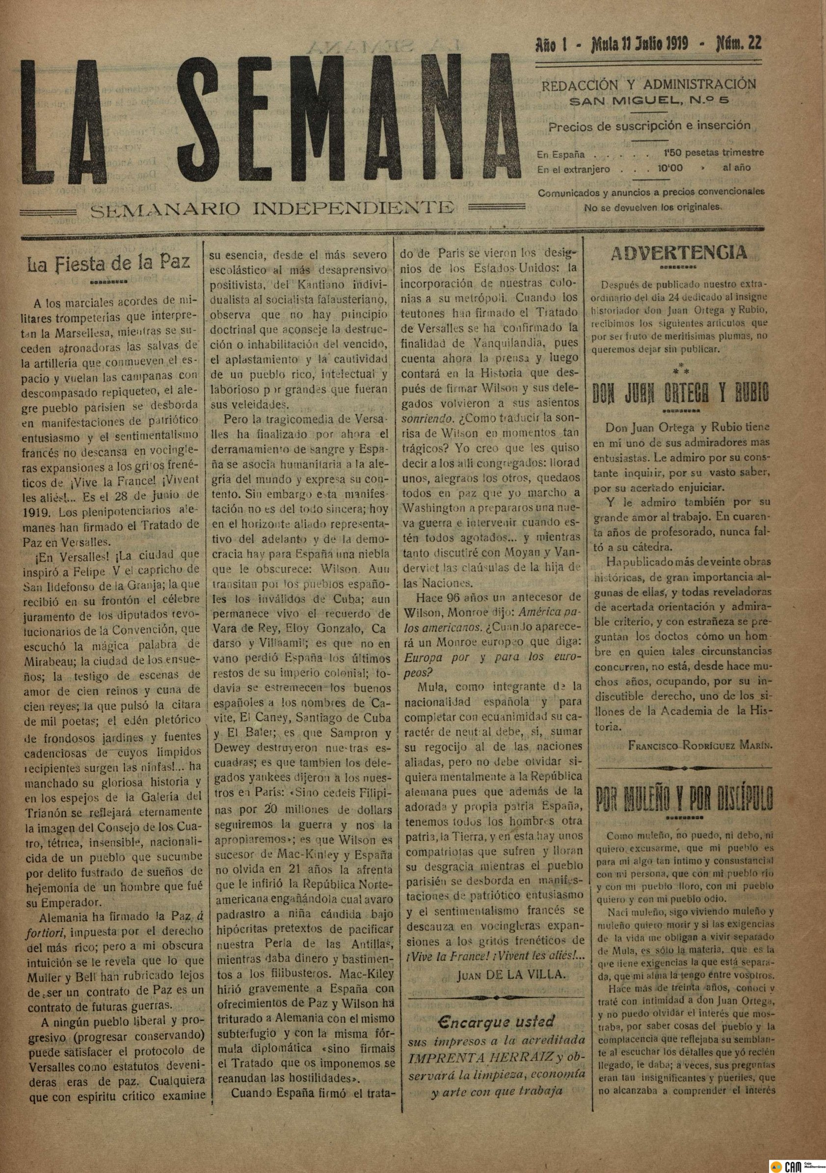 Periodico de Mula La Semana nº22 11 de Julio de 1919 Periodico Muleño,La SemanaArtículo SiguientePeriodico de Mula La Semana nº21 4 de Julio de 1919TipografíaMás PequeñaPequeñaMedianaGrandeMás GrandePredeterminadaHelveticaSegoeGeorgiaTimesModo LecturaCompartirArtículo SiguientePeriodico de Mula La Semana nº21 4 de Julio de 1919