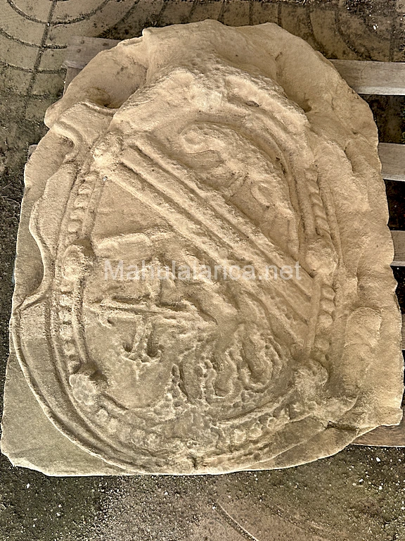 Bordea el campo de todo el escudo un collar con ocho rosas que en realidad es la orla de oro con ocho rosas encarnadas de las armas de Resalt.