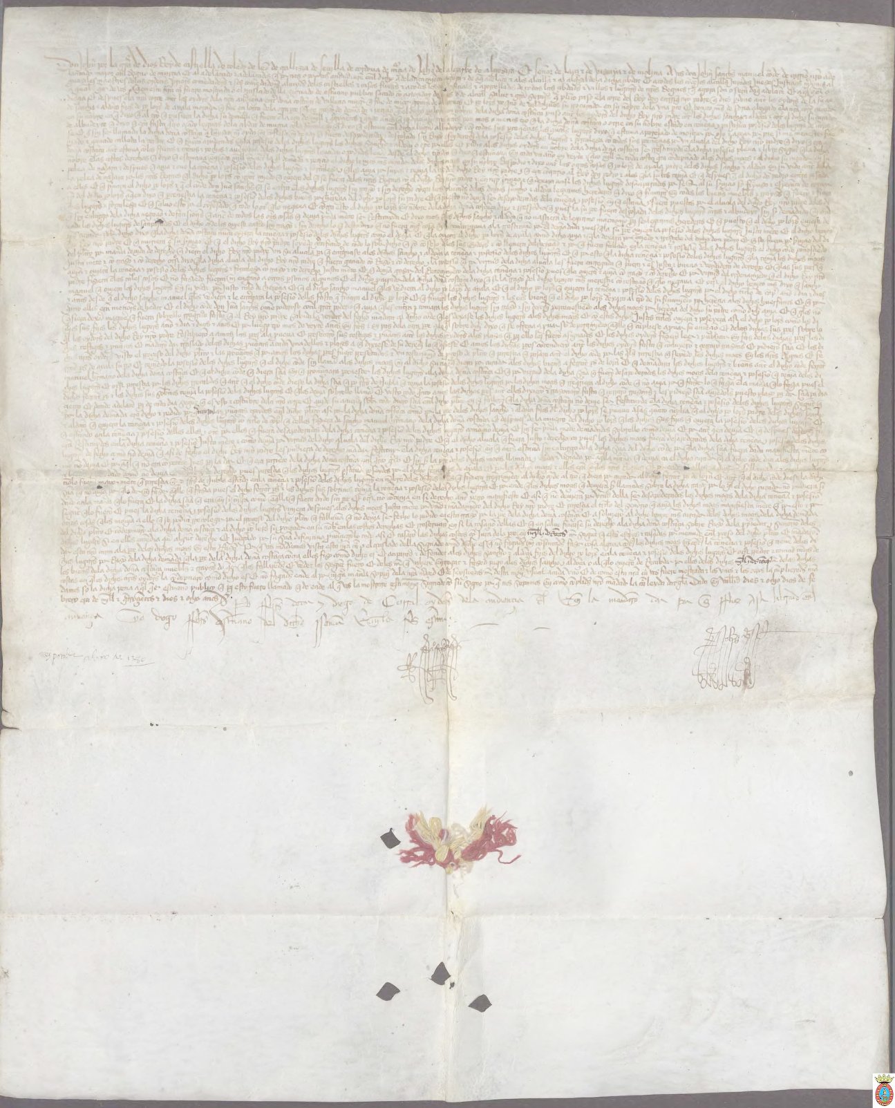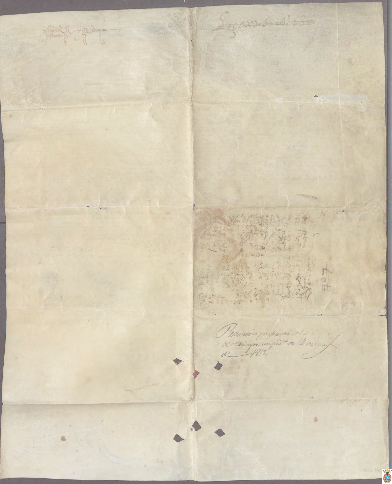 Pergamino, 54 x 44 cms. Documento fechado en la Era Hispánica.A.M.de Mula. Carp. 1 de Privilegios.