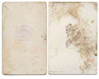 Figura 2. Publicidad del fotógrafo Vicente Bernat Pla en el reverso de dos de sus fotografías, 1891. A la izquierda, sello de caucho. A la derecha cartón estampado. Fuente: Colección Particular del Autor (en adelante CPA).