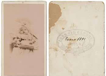 Figura 7. Anverso y reverso de una fotografía de José Gil Candel en la década de 1880. En la fotografía, el procurador muleño Lorenzo Jiménez de los Reyes. Fuente: José Fernández Jiménez.