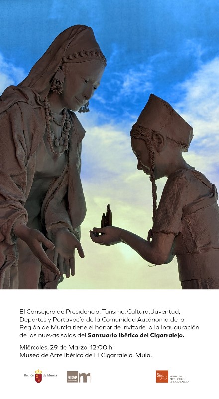 Nos es grato enviarles la invitación a la inauguración de las nuevas salas de exposición permanente dedicadas al "Santuario Ibérico del Cigarralejo", mañana miércoles 29, a las 12 horas.
