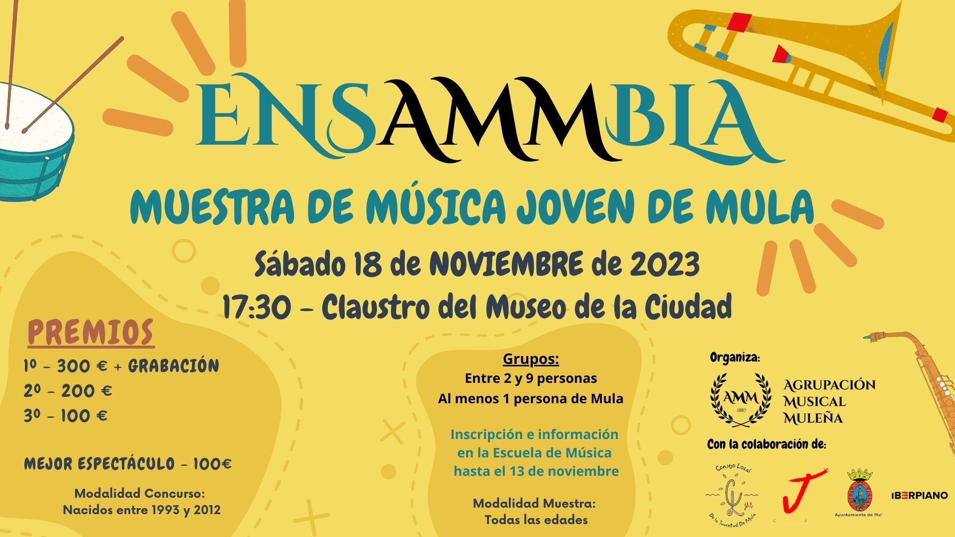 La Muestra está́ dirigida a todo tipo de formaciones instrumentales, de cualquier estilo musical, en la que al menos una de las personas tenga relación con el municipio de Mula.