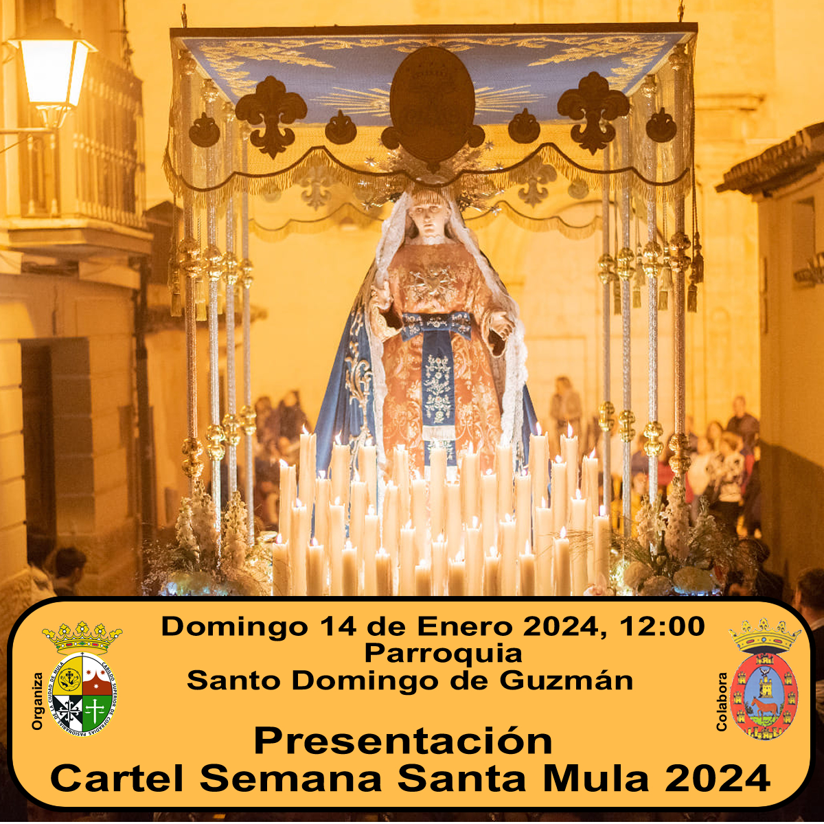 Sean todos invitados a asistir al acto de presentación del cartel anunciador de la Semana Santa Muleña 2024.