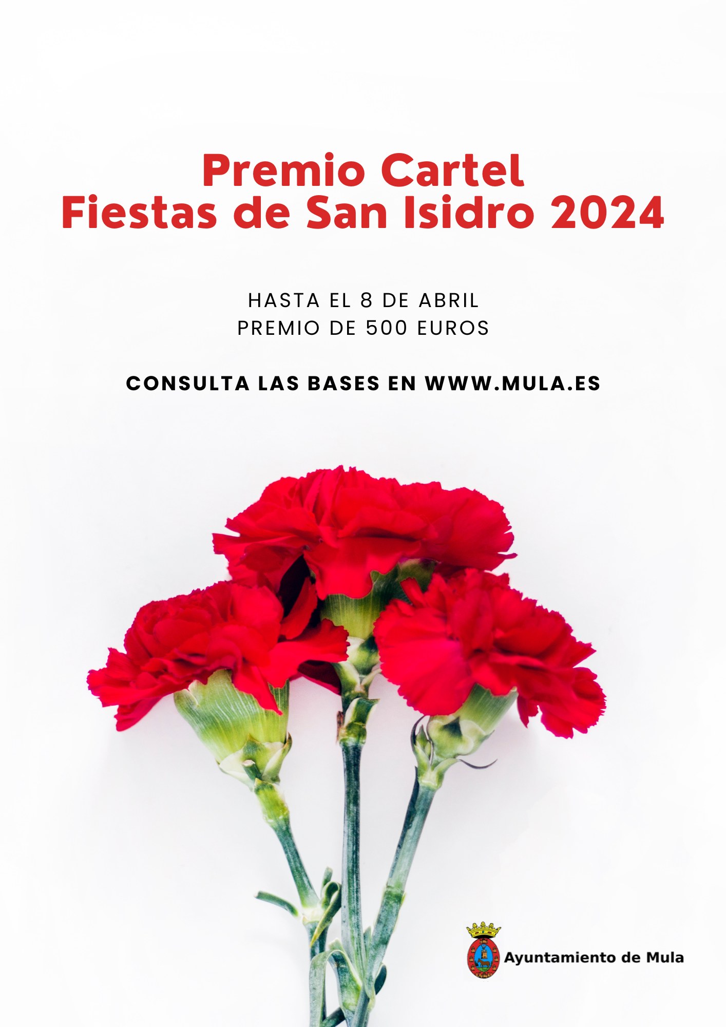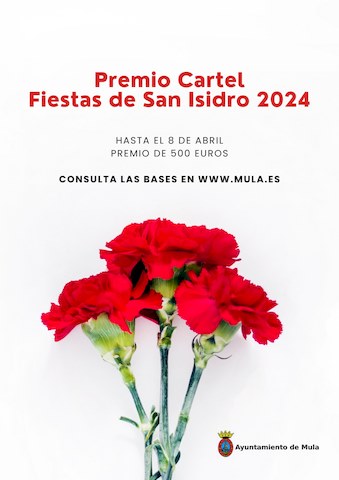 El Ayuntamiento de Mula, a través de la Concejalía de Festejos, convoca el Premio Cartel Fiestas de San Isidro 2024. El premio es de 500 euros y puede presentarse cualquier persona que lo desee mayor de 16 años, hasta el 8 de abril, a las 13 horas.