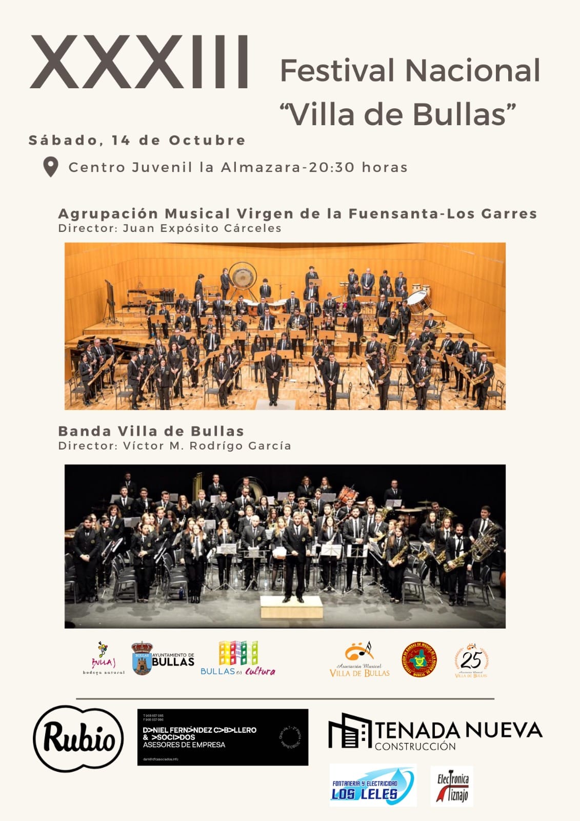 La entrada es gratuita hasta completar aforo. Organiza la Agrupación Musical Villa de Bullas con la colaboración del Ayuntamiento de Bullas.