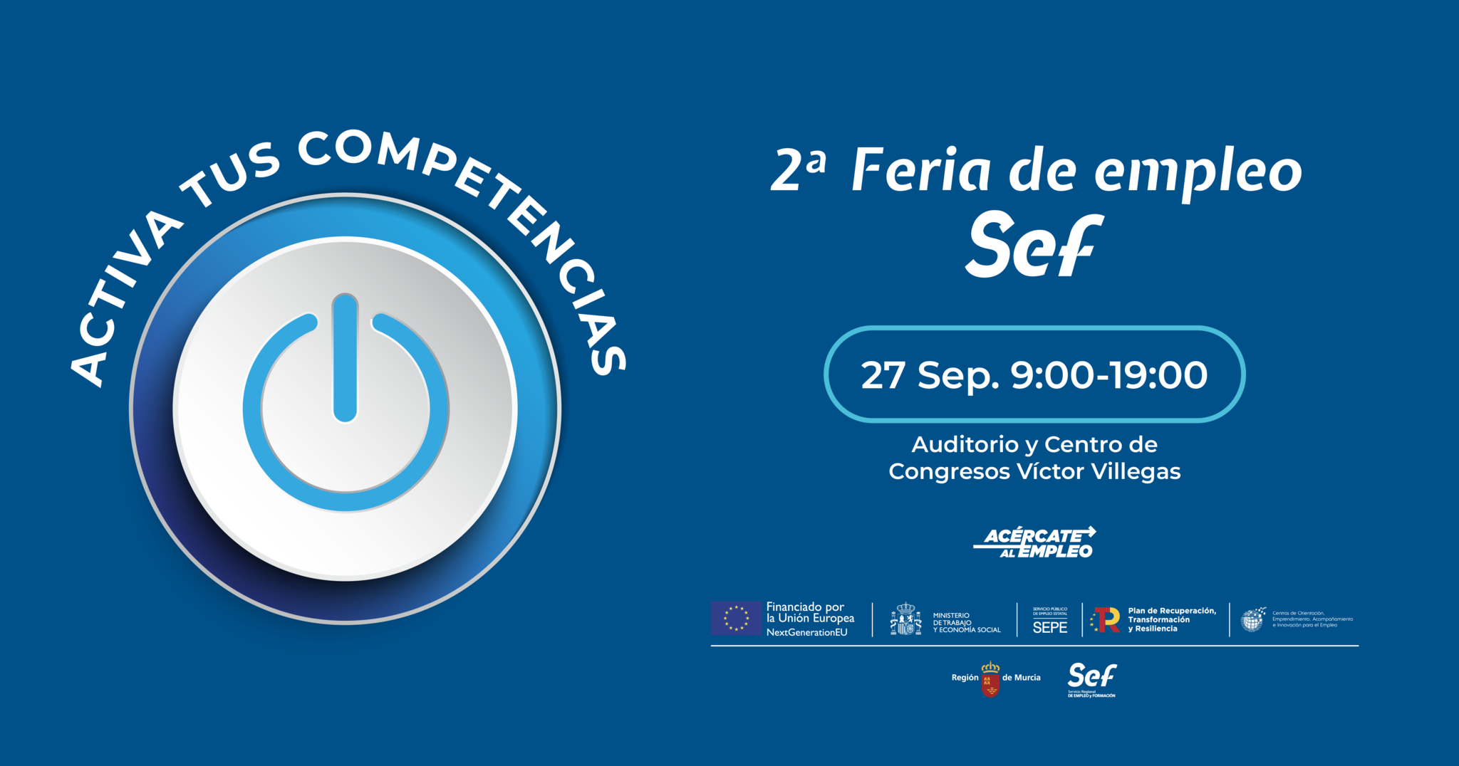 El Servicio Regional de Empleo y Formación (SEF), dependiente de la Consejería de Educación, Formación Profesional y Empleo, ha abierto la inscripción para participar en la que será su segunda Feria de Empleo, que se celebrará el próximo 27 de septiembre, de 9:30 a 19:00 horas, en el edificio anexo del Auditorio y Centro de Congresos Víctor Villegas de Murcia.