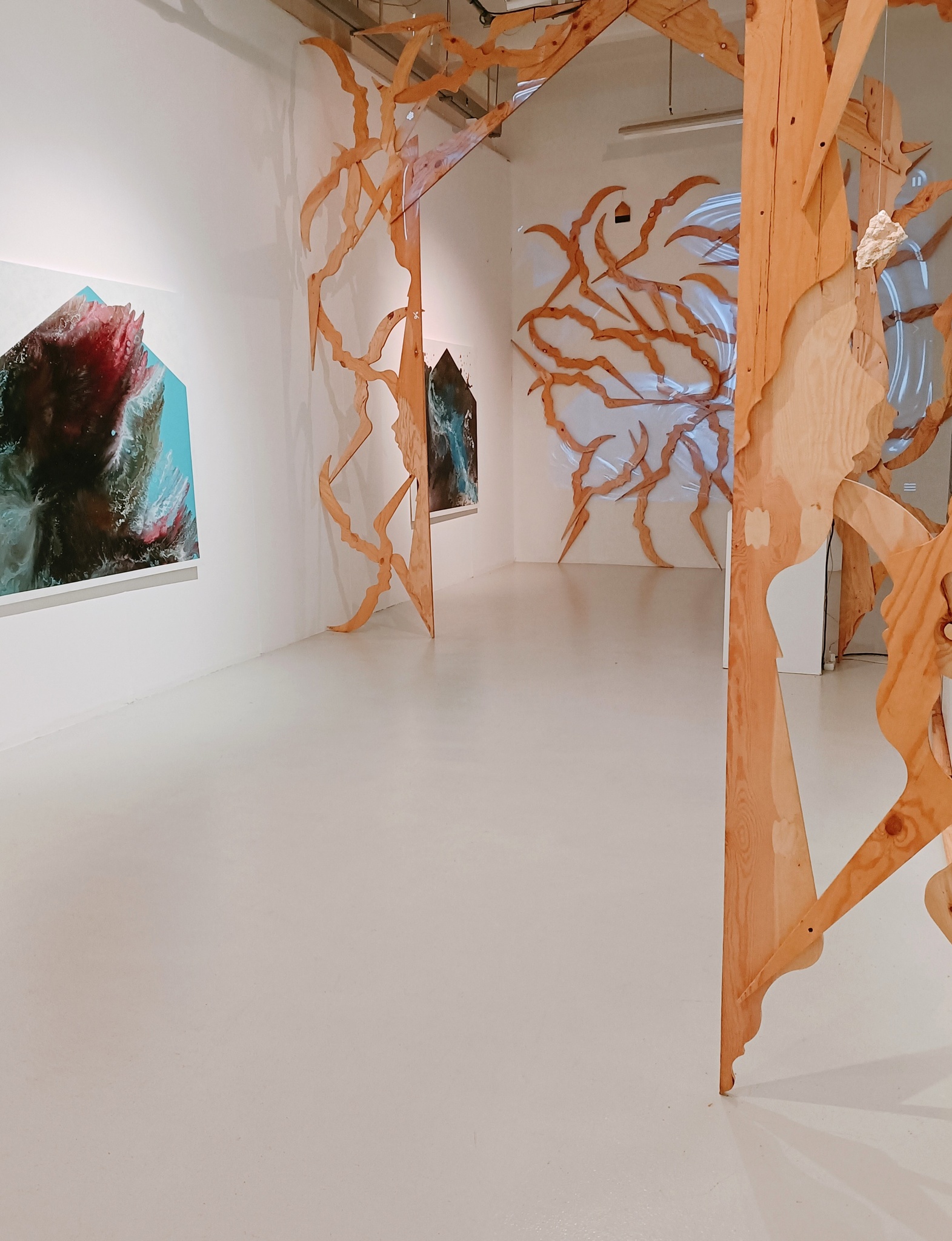 El artista Rafael Picó muestra hasta el próximo jueves sus paisajes abstractos y personajes oníricos en la exposición ‘Castillos en el aire’ que puede visitarse en el Centro Párraga. En la instalación pintura y escultura se unen con perfiles de la cara de su hija, la protagonista de sus pensamientos y quien ha cambiado su rol, es ella la que ha formado una barricada a su alrededor, dándole tranquilidad y haciéndole sentir más libre a la hora de la creación y de su día a día.