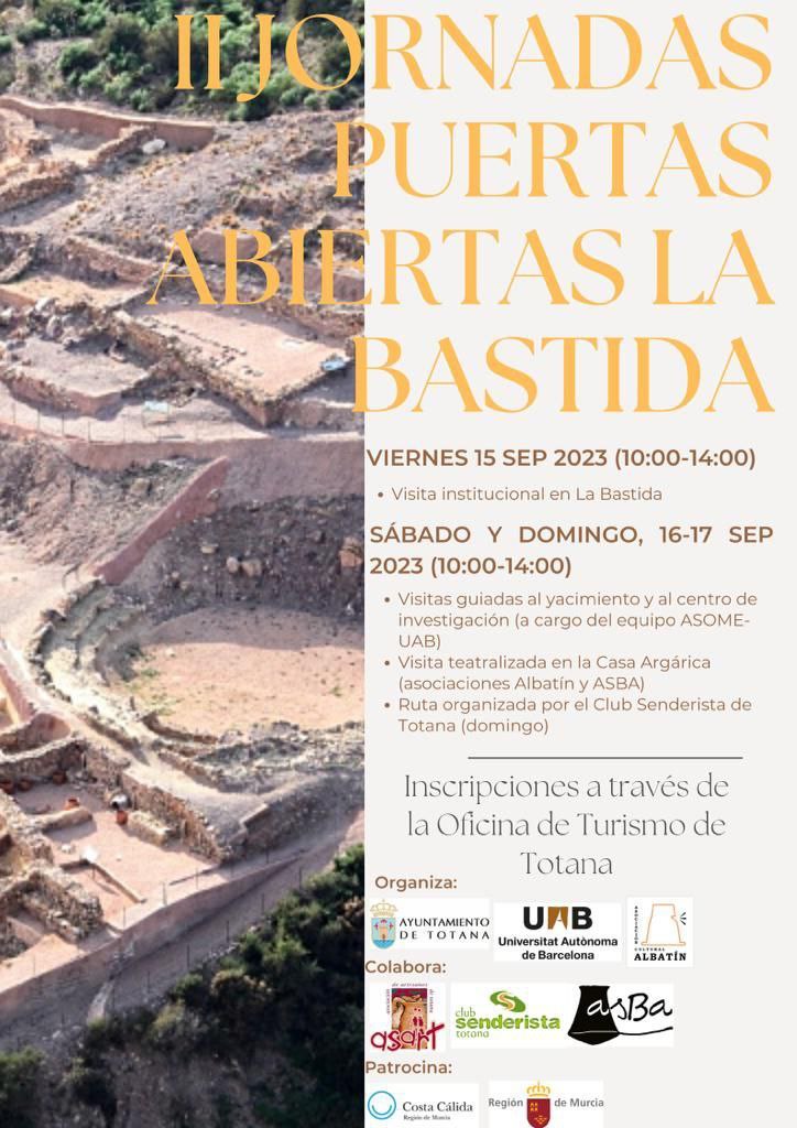 El director general del Instituto de Turismo de la Región de Murcia (Itrem), Juan Francisco Martínez, que participó en la presentación de este evento, junto con el alcalde de Totana, Juan Pagán, puso en valor esta iniciativa, impulsada por la Asociación Cultural Albatín y que ha contado con el apoyo del Gobierno regional. Martínez destacó que “esta cita permitirá extender las actividades programadas para el Día de La Bastida más allá del yacimiento arqueológico del mismo nombre, llevándolas al municipio, un hecho que beneficiará, al mismo tiempo, a comercios, establecimientos, asociaciones y otros colectivos”.