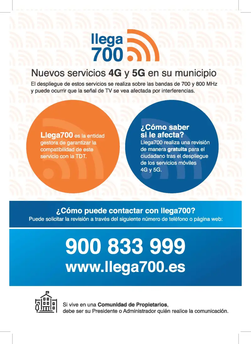 Llega700 es la entidad gestora encargada de ofrecer los servicios que garantizarán la compatibilidad entre la puesta en marcha de la emisión móvil 4G y 5G en las bandas de 800 y 700 MHz, respectivamente, y la recepción del servicio de TDT.