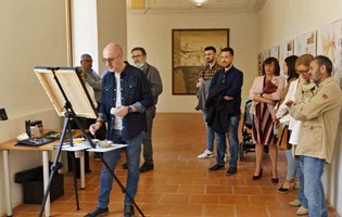 Durante la demostración, Nono García ha desglosado paso a paso las técnicas utilizadas y los detalles que componen el cartel ilustrador del Mercado Barroco, en esta edición obra suya, y que muestra una composición de jarra, plato con pan, copa y postal de Mula.