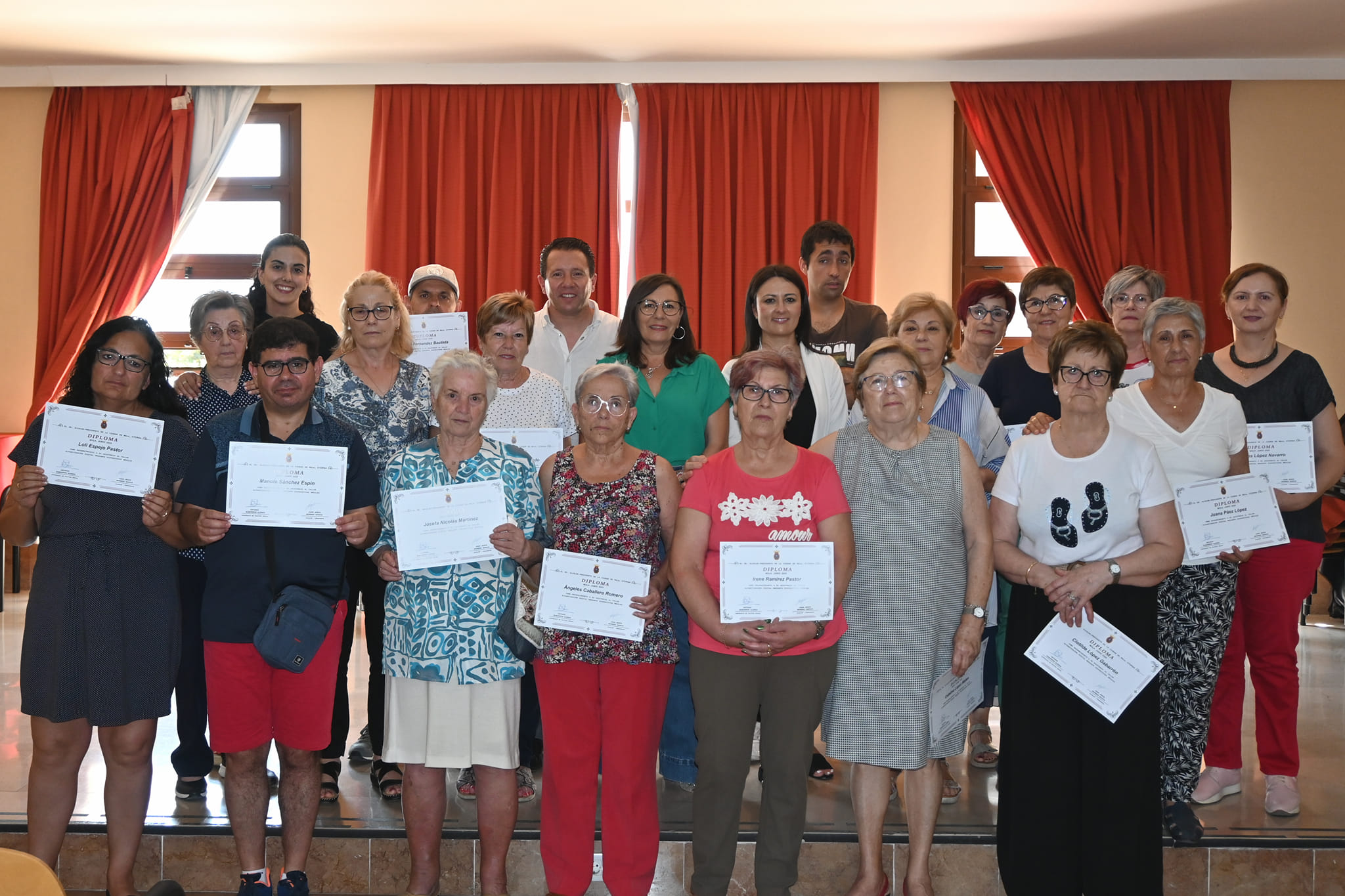 El alcalde de Mula, Juan Jesús Moreno, acompañado por las concejalas Alejandra Martínez y Antonia Gabarrón, ha hecho entrega de los diplomas del taller Alfabetización digital mediante dispositivos móviles, puesto en marcha por la Concejalía de Política Social y destinado a personas de la tercera edad y miembros de Intedis.