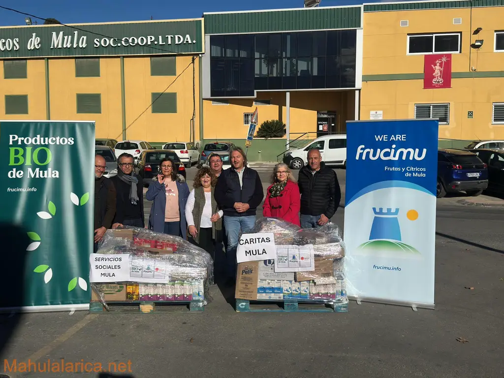 Representantes de la dirección de la Cooperativa de Cítricos de Mula " Frucimu" han echo está mañana, como se aprecia en la foto, realizada por Angel Garcia , la donación de alimentos a distintas asociaciones benéficas de Mula, Cáritas y al Banco de Alimentos, Frucimu se suma así a la campaña solidaria de distintas asociaciones, clubes y personas de la Bella Natural y Señorial ciudad de Mula con las personas más desfavorecidas y necesitadas del municipio muleño.