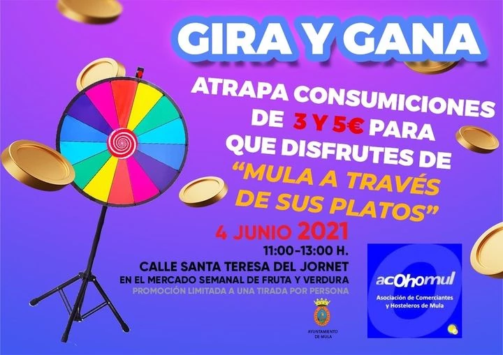 GIRA Y GANA ,Atrapa consumisiones de 3€ y 5€ Ciudad de Mula Previous Article La Concejalía de Servicios Municipales y Mantenimiento anima a todos los vecinos a usar el Ecoparque Next Article Mula participa en el VI Congreso Internacional de Calidad y Sostenibilidad Turísticas Typography Smaller Small Medium Big Bigger Default Helvetica Segoe Georgia Times Reading Mode Share This Previous Article La Concejalía de Servicios Municipales y Mantenimiento anima a todos los vecinos a usar el Ecoparque Next Article Mula participa en el VI Congreso Internacional de Calidad y Sostenibilidad Turísticas