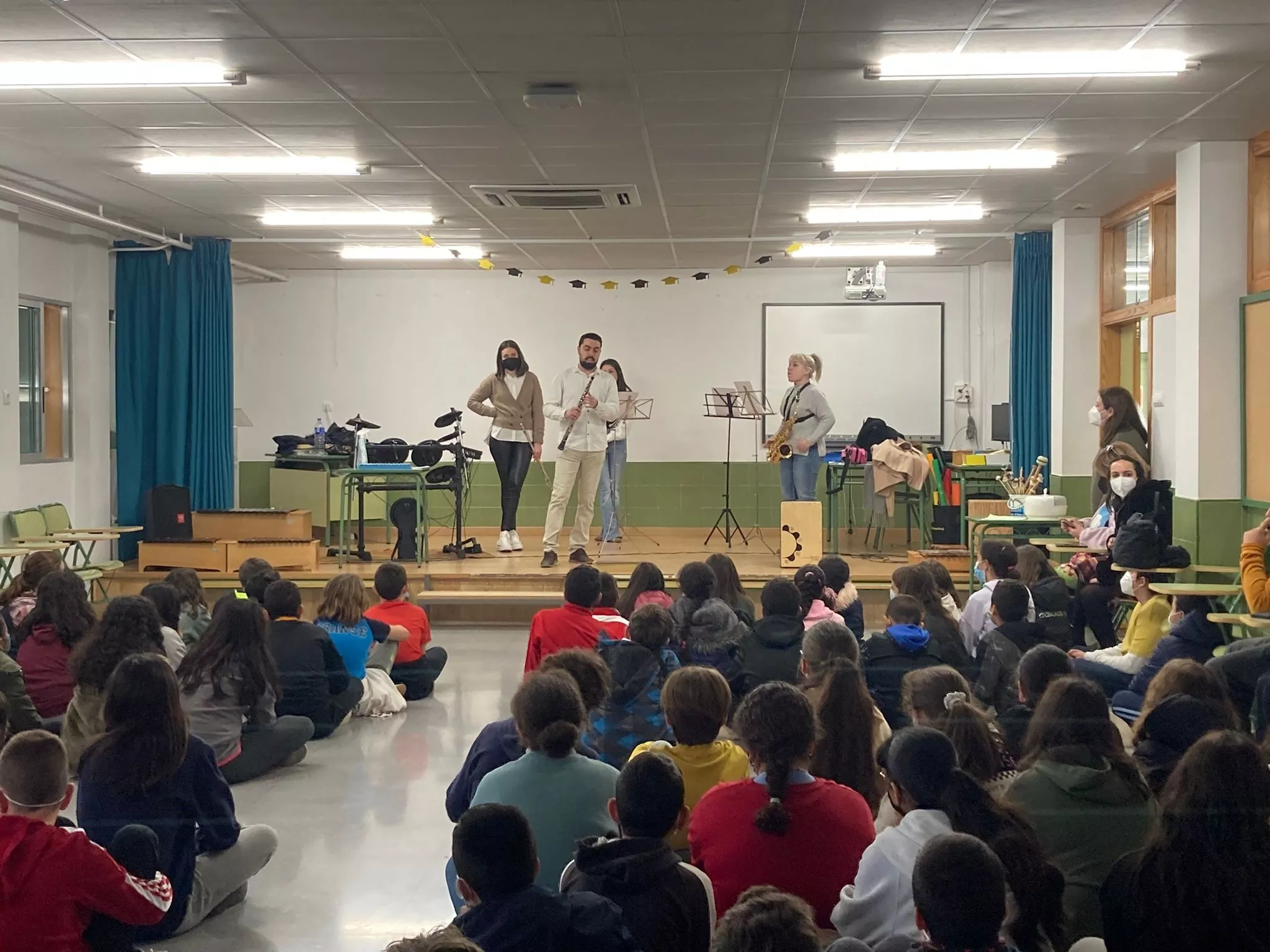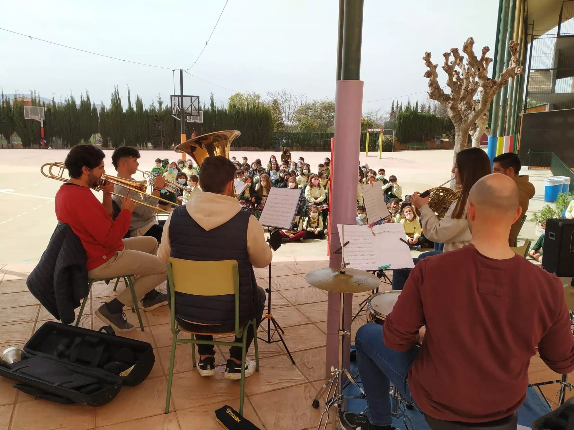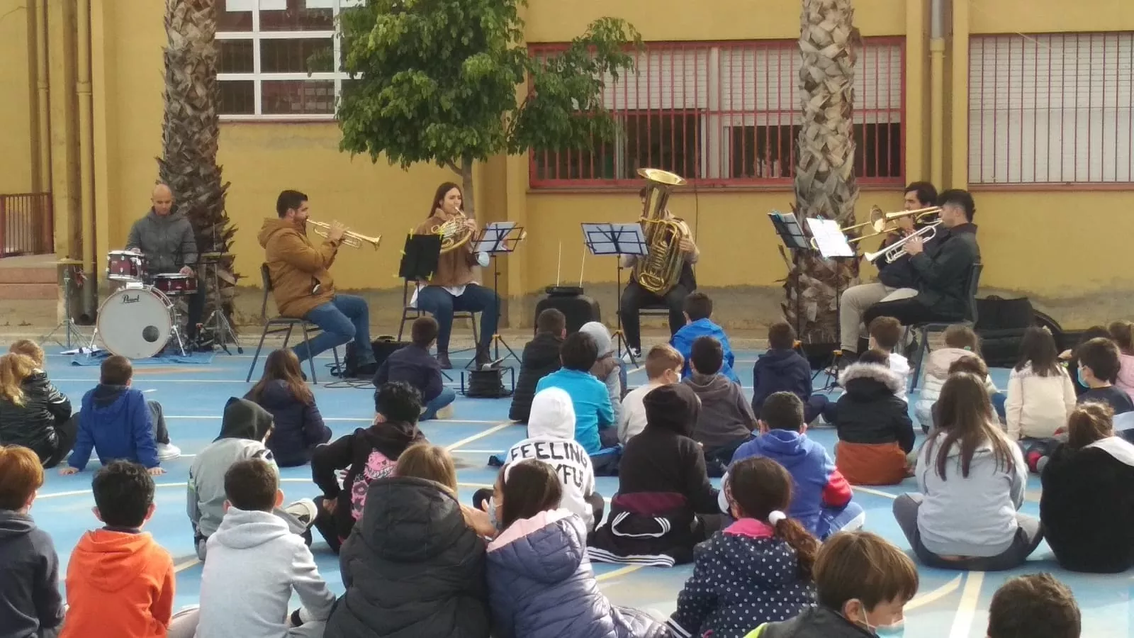 El grupo de profesores de viento-metal + percusión ha visitado el colegio Anita Arnao y Colegio Santa Clara.Nos lo hemos pasado muy bien.