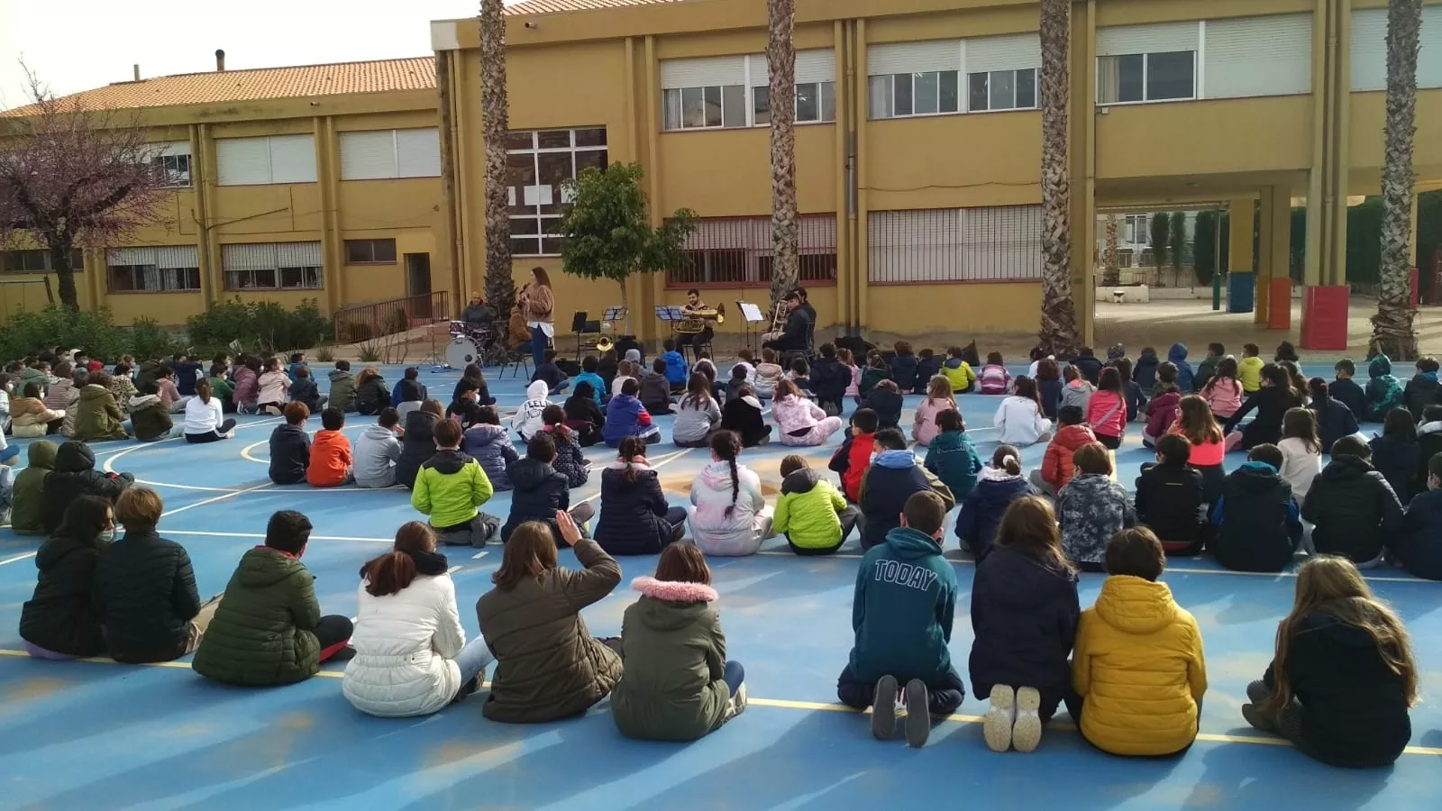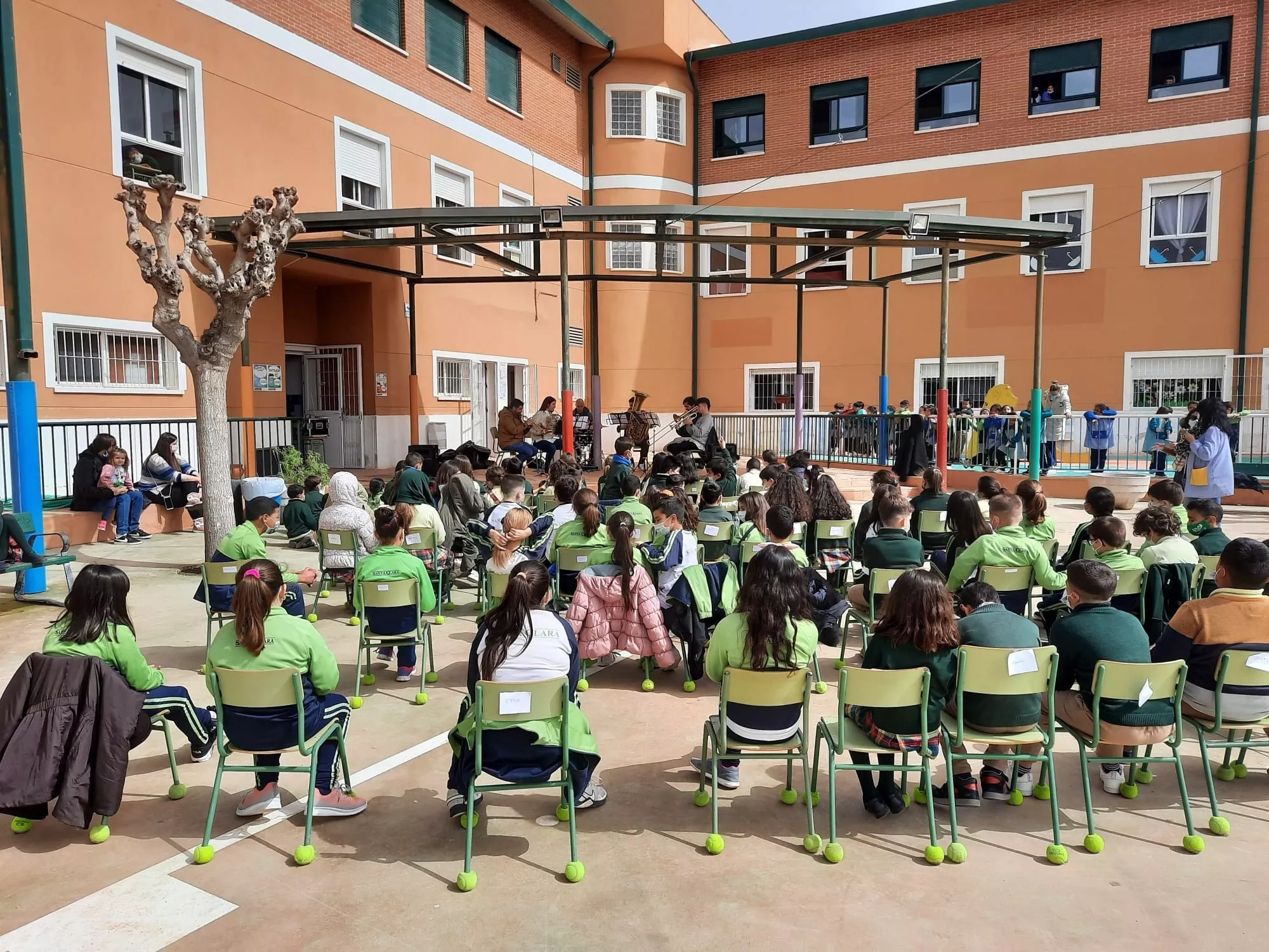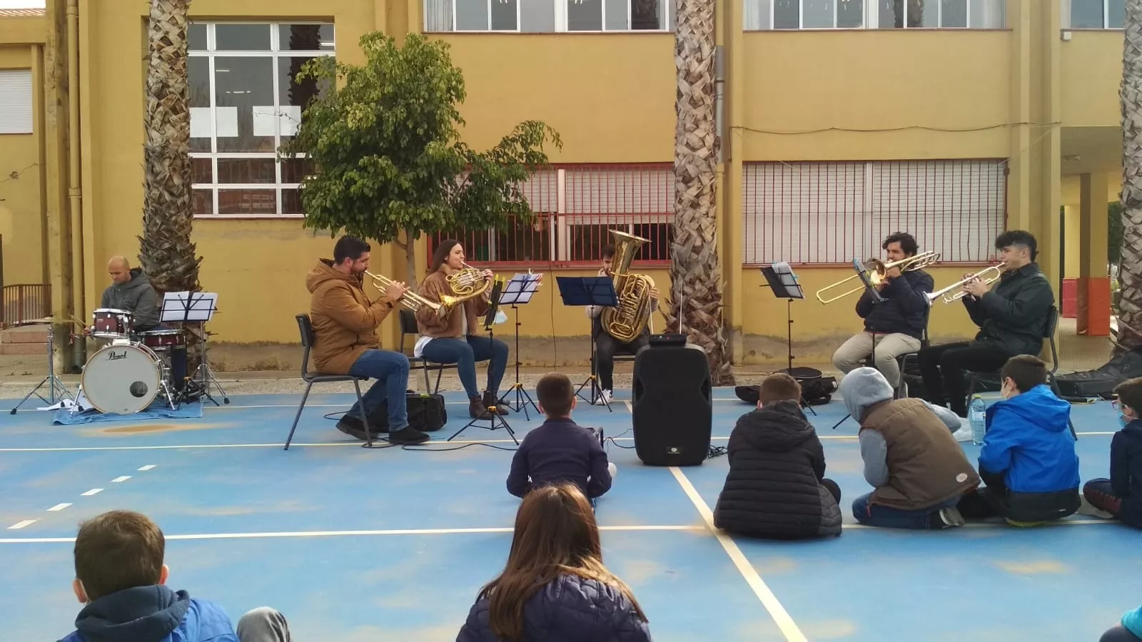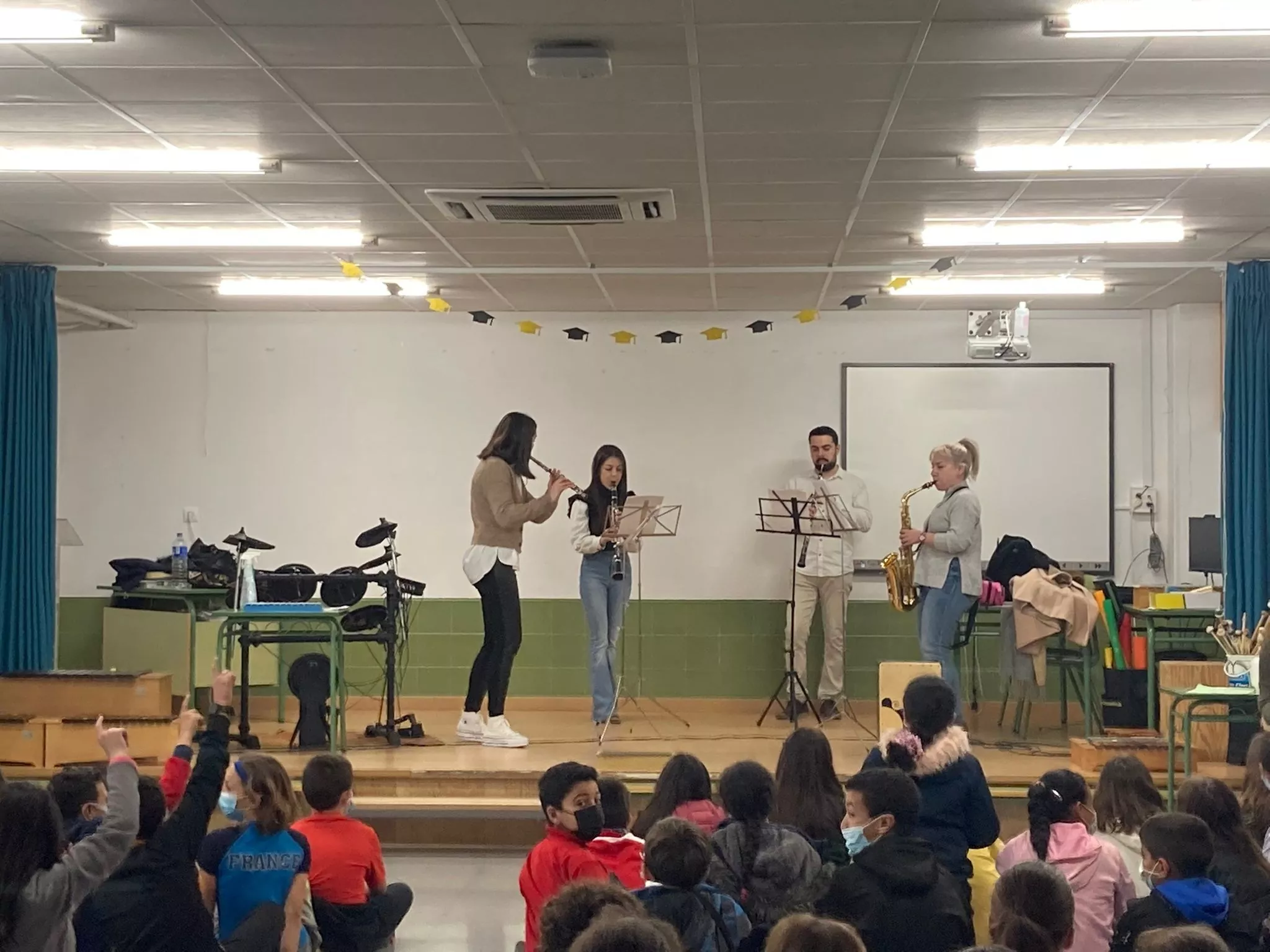 El grupo de profesores de viento-metal + percusión ha visitado el colegio Anita Arnao y Colegio Santa Clara.Nos lo hemos pasado muy bien.