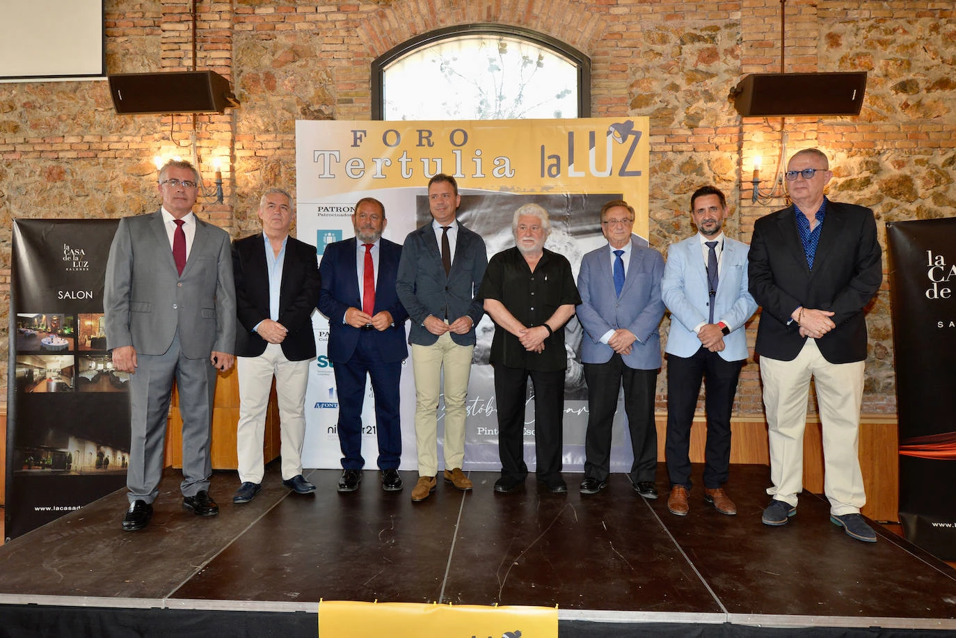 Cristóbal Gabarrón respondió a las preguntas de los invitados a la tertulia de los salones de La Luz, entre los que figuraban el consejero de Presidencia, Marcos Ortuño; las diputadas del PP Miriam Guardiola e Inmaculada Lardín; el exalcalde de Murcia José Ballesta, edil del PP en el Ayuntamiento de Murcia; los empresarios Tomás Fuertes y Miguel del Toro; el director de LA VERDAD, Alberto Aguirre de Cárcer; el director del Museo de Bellas Artes de Murcia, Juan García Sandoval; el crítico y profesor de la UMU José Belmonte, y el exrector de la UMU José Antonio Cobacho. El pintor hizo hincapié en que «la Región necesita de iniciativas que inviertan en cultura» y consideró la educación «lo más importante de una sociedad».
