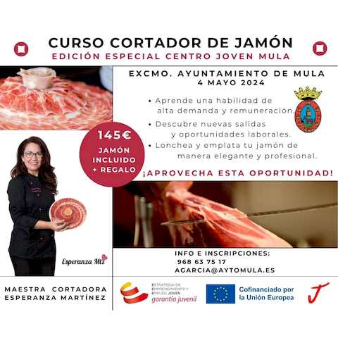 La Concejalía de Juventud de Mula se complace en anunciar el lanzamiento del Curso de Cortador de Jamón, una oportunidad única para aprender una habilidad de gran demanda y remuneración en el mercado laboral actual.