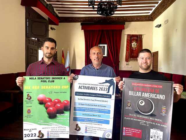 La asociación muleña, cuya actividad se centra en la práctica y la difusión del billar y del snooker, ha presentado esta mañana, en el salón de plenos del Ayuntamiento de Mula, los carteles con las actividades programadas para el 2022.