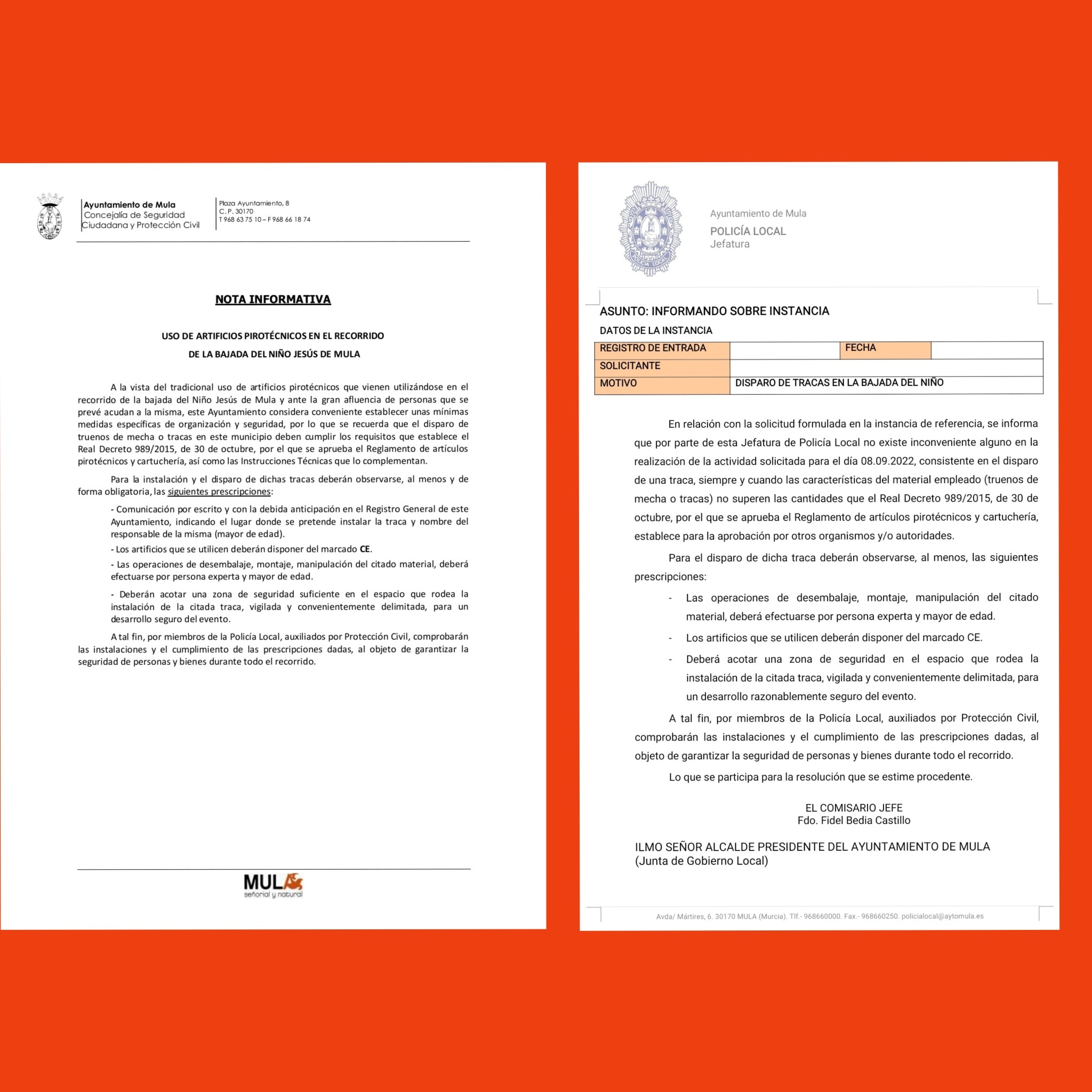Nota informativa sobre el uso de artificios pirotécnicos en el recorrido de la bajada del niño