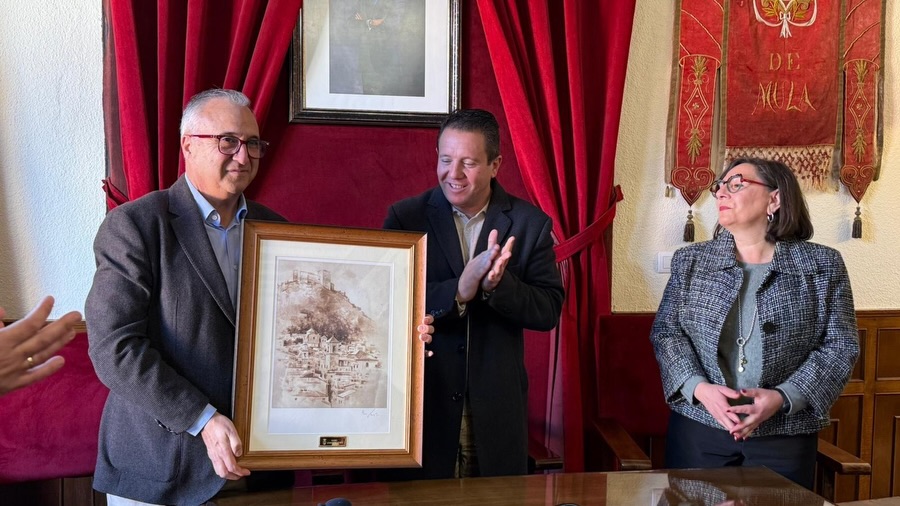 El alcalde de Mula, junto a la concejala de Política Social, ha recibido en el Ayuntamiento a representantes de la Cofradía de la Vera Cruz de Caravaca de la Cruz y de la Hermandad del Carmen de Mula, con motivo del hermanamiento entre ambas entidades, un acto que refuerza los lazos religiosos, culturales y sociales entre ambos municipios.