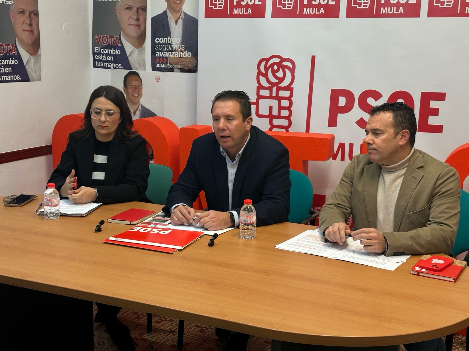 El Secretario General del Partido Socialista y alcalde de Mula, Juan Jesús Moreno, la Secretaria de Política Económica y Concejal de Hacienda, Alejandra Martínez y el Diputado Regional Fernando Moreno, han comparecido esta tarde en rueda de prensa para denunciar y dejar constancia de su malestar por la falta de inclusión en los Presupuestos Generales de la Comunidad Autónoma de la Región de Murcia, de partidas destinadas al municipio.