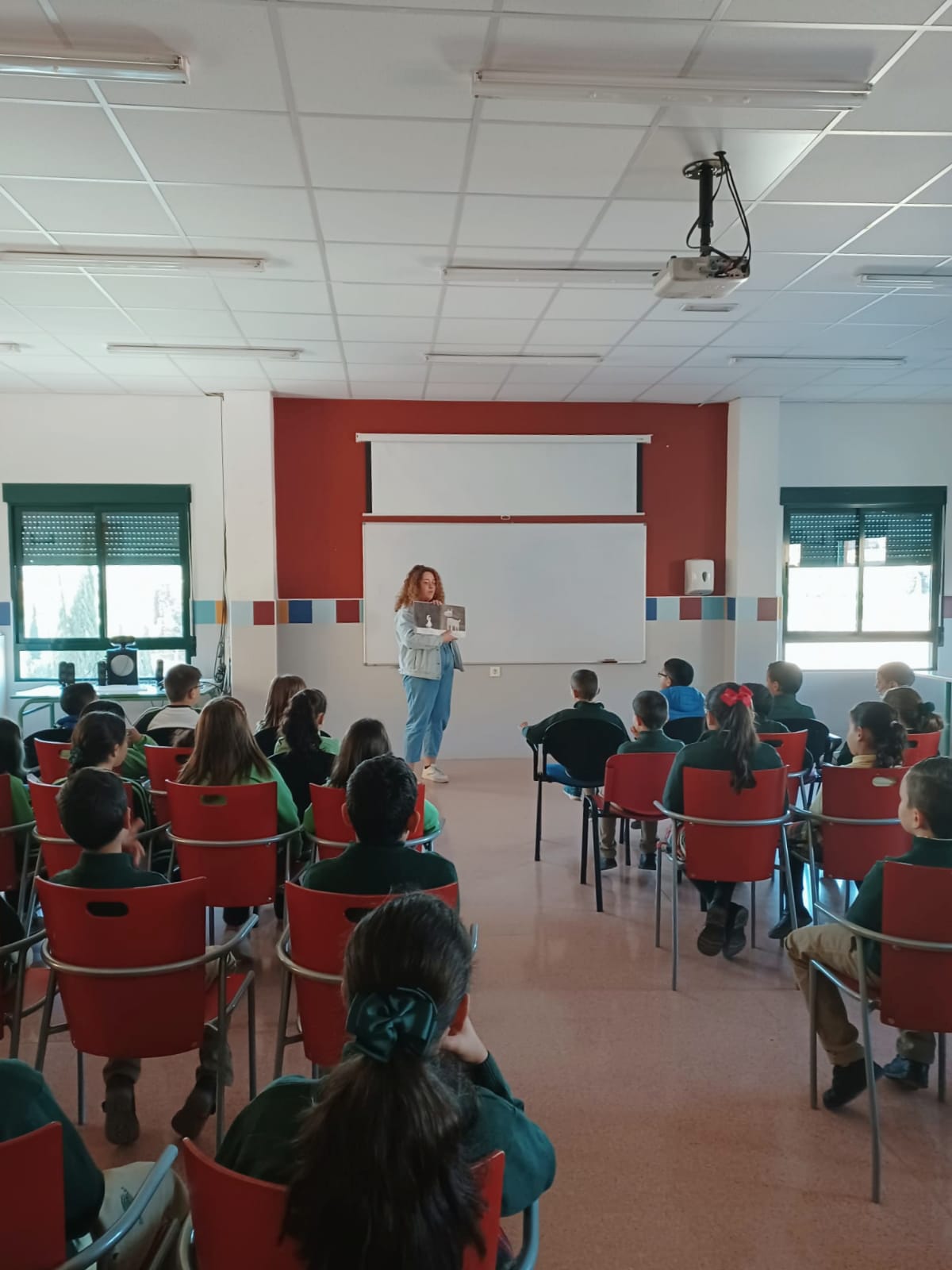 Otra de las iniciativas con motivo del 25-N ha sido la lectura del cuento El chubasquero de Aurora al alumnado de 3º y 4º de Primaria de los colegios del municipio, a cargo de la concejala de Mujer e Igualdad.