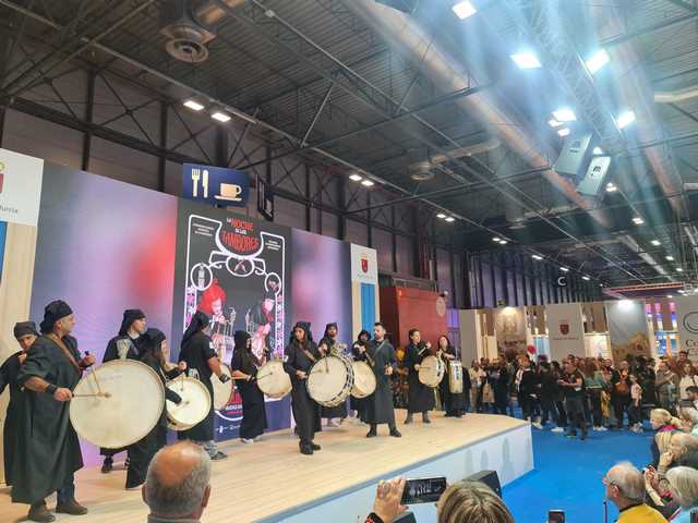 Una delegación de 12 tamboristas de Mula ha estado presente en la Feria Internacional de Turismo (FITUR) recreando La Noche de los Tambores, una fiesta catalogada como Patrimonio Cultural Inmaterial por la UNESCO y de Interés Turístico Internacional.