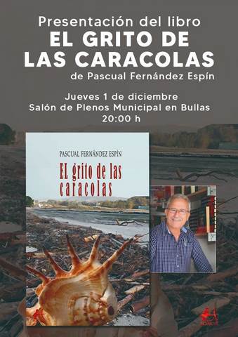El próximo jueves 1 de diciembre se presenta en el salón de plenos del ayto de Bullas a las 20 horas el libro de Pascual Fernández Espín ‘El grito de las caracolas’.