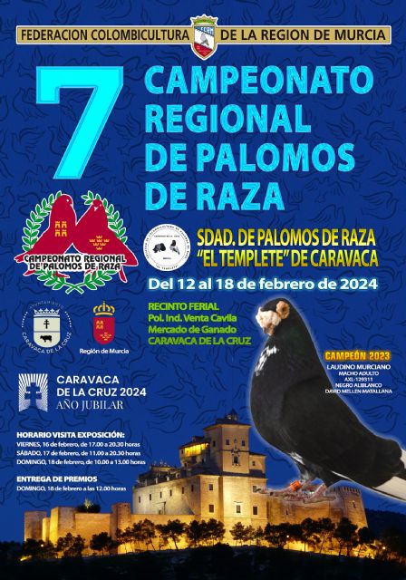 Caravaca será del 12 al 18 de febrero sede del Campeonato Regional de Palomos de Raza