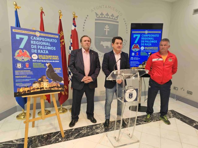 Caravaca de la Cruz será del 12 al 18 de febrero la sede del séptimo Campeonato Regional de Palomos de Raza. Este evento, que congregará a más de 300 aficionados esta práctica deportiva, ha sido presentado por el concejal de Deportes en el Consistorio caravaqueño, Pepe Fernández Tudela; el presidente de la Federación Colombicultura de la Región de Murcia, José Rubio, y el presidente de la Sociedad de Palomos de Raza ‘El Templete’ de Caravaca, Juan Puertas.