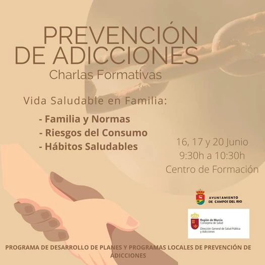 Campos del Río acoge los días 16, 17 y 20 de junio las charlas formativas ‘Prevención de Adicciones’.
