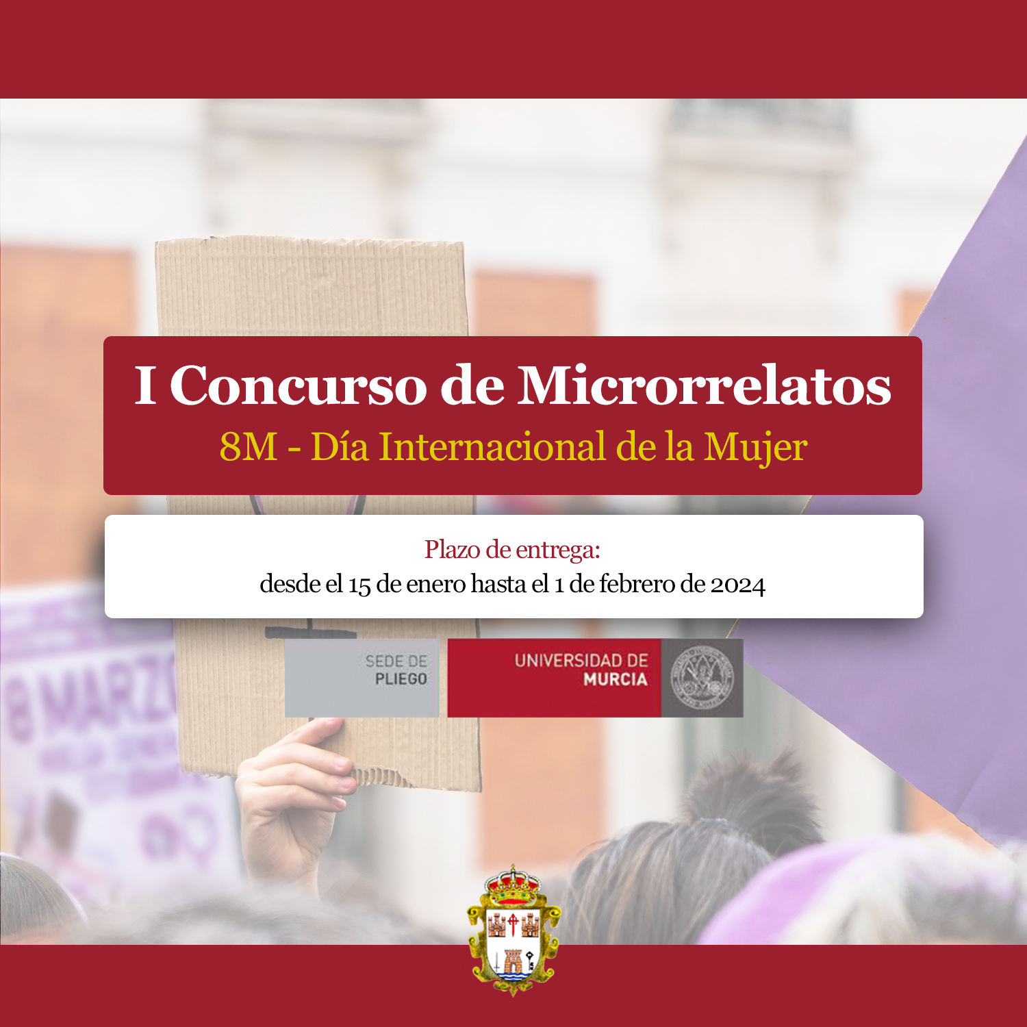 El Ilmo. Ayuntamiento de Pliego y la Universidad de Murcia, a través de su Sede Permanente en Pliego, han instituido una convocatoria de creaciones narrativas breves enmarcadas en el tema de la igualdad de género.El objetivo de este concurso es estimular la imaginación y la creación literaria de los plegueros y plegueras, así como reafirmar su compromiso con la igualdad.
