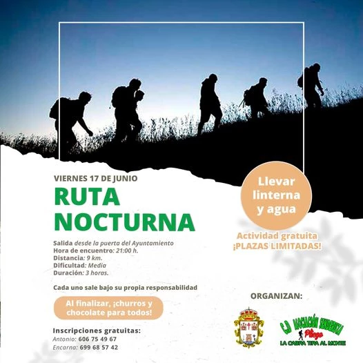 El próximo viernes 17 de junio la Asociación Senderista de Pliego "La cabra tira al monte" ha organizado una ruta nocturna, perfecta para disfrutar de nuestro entorno bajo las luces de las estrellas.