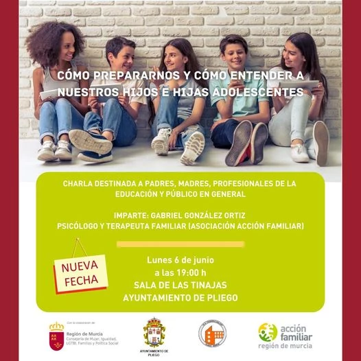 Cambio de día de la charla “Cómo prepararnos y cómo entender a nuestros hijos e hijas adolescentes” al lunes 6 de junio.