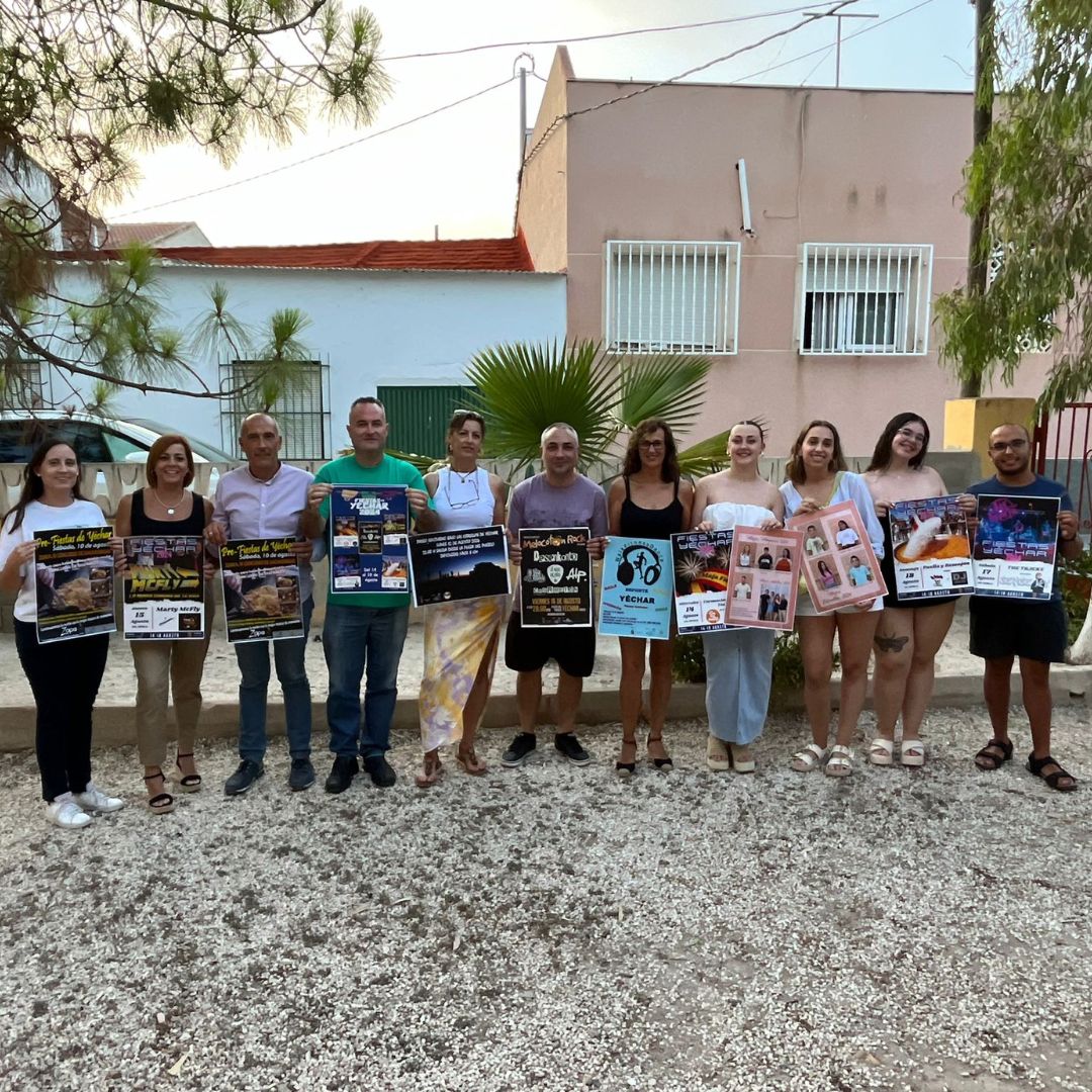 La concejala de Festejos, Alicia Zapata, acompañada del concejal de Deportes, Vicente López y miembros de la Junta Vecinal de Yéchar, presentan la programación de las Fiestas de Yéchar que tendrán lugar del 14 al 18 de agosto con actividades variadas que prometen entretener y divertir a vecinos y visitantes. Además, el fin de semana previo comenzarán las Pre Fiestas.