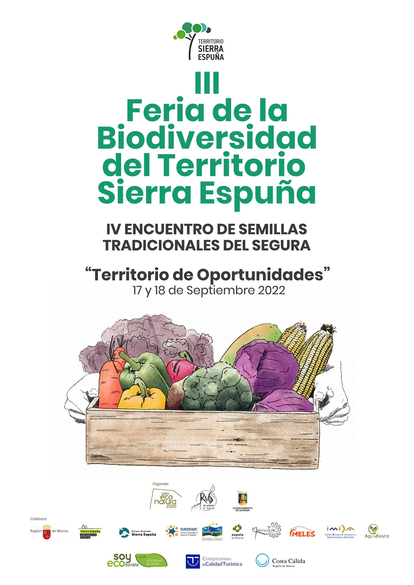 Junto a la Semana Territorio Sierra Espuña, se celebra la III Feria de la Biodiversidad: IV Encuentro de Semillas Tradicionales del Segura “Sierra Espuña Territorio de Oportunidades” los días 17 y 18 de septiembre en el aparcamiento del Berro, frente al Camping Sierra Espuña. Una oportunidad para descubrir los productos que ofrece el TSE.