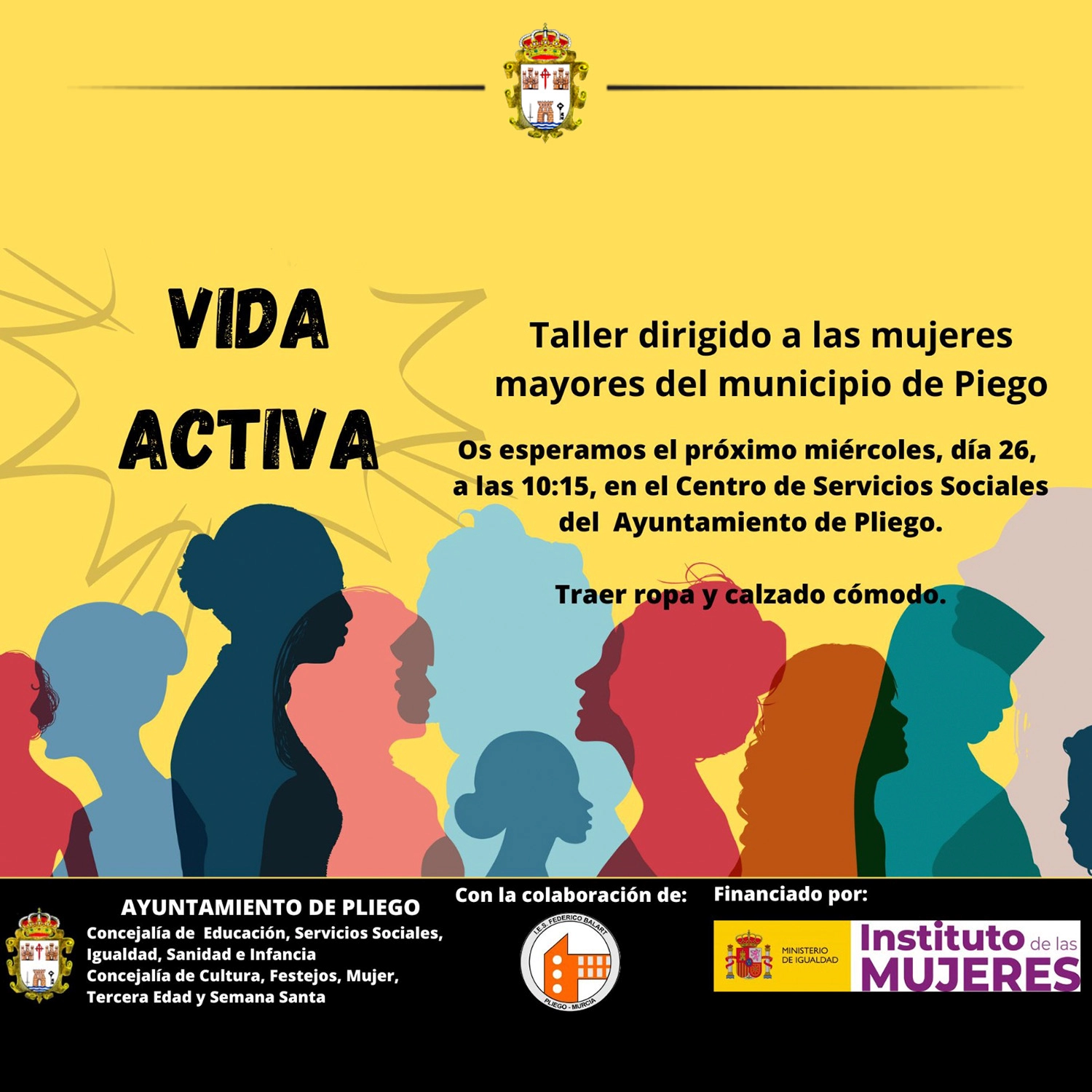 Venid a disfrutar y a divertiros en este taller dirigido a las mujeres mayores de Pliego.