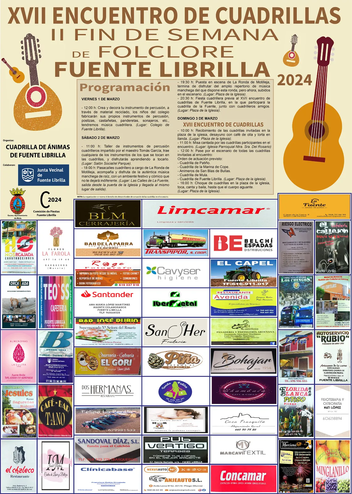 Y es que, este año, el encuentro se extiende durante un fin de semana completo, con una programación que apuesta por la participación de grandes y pequeños. Además, sigue caracterizándose por ser un punto de referencia para crear sinergias entre el folclore de la Región de Murcia, contando con la presencia de la Cuadrilla de Patiño, la Cuadrilla de la Marina de Cope, Animeros de San Blas de Bullas, la Cuadrilla de Mula y la Cuadrilla de Fuente Librilla.