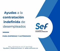 La Consejería de Empresa, Empleo, Universidades y Portavocía, a través del Servicio Regional de Empleo y Formación (SEF), ha convocado ayudas por importe de 3.017.500 euros para empresas y autónomos que contraten de manera indefinida a personas en desempleo de difícil inserción laboral como los parados de larga duración, jóvenes menores de 30 años o personas en riesgo de exclusión. Esta subvención oscila de 3.000 a 9.000 euros.