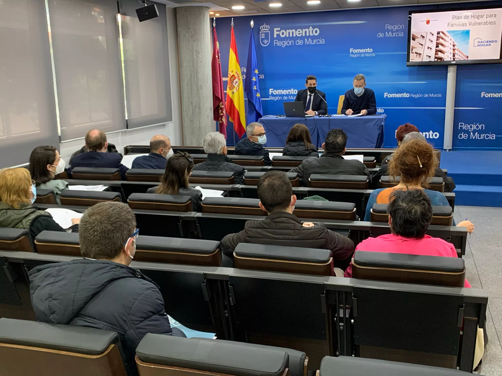 El director general de Vivienda, José Francisco Lajara, presentó hoy los detalles de las ayudas a representantes de Cermi; Famdif; Jesús Abandonado; Asociación Columbares; Cruz Roja; Accem; Assido; Red Madre; Cepaim; y Cáritas.