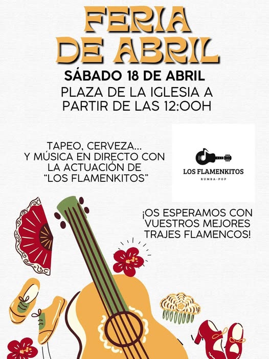Os esperamos en la feria de abril de la Fuente, con bebida, comida y la actuación del grupo “Los Flamenkitos” para amenizar la tarde