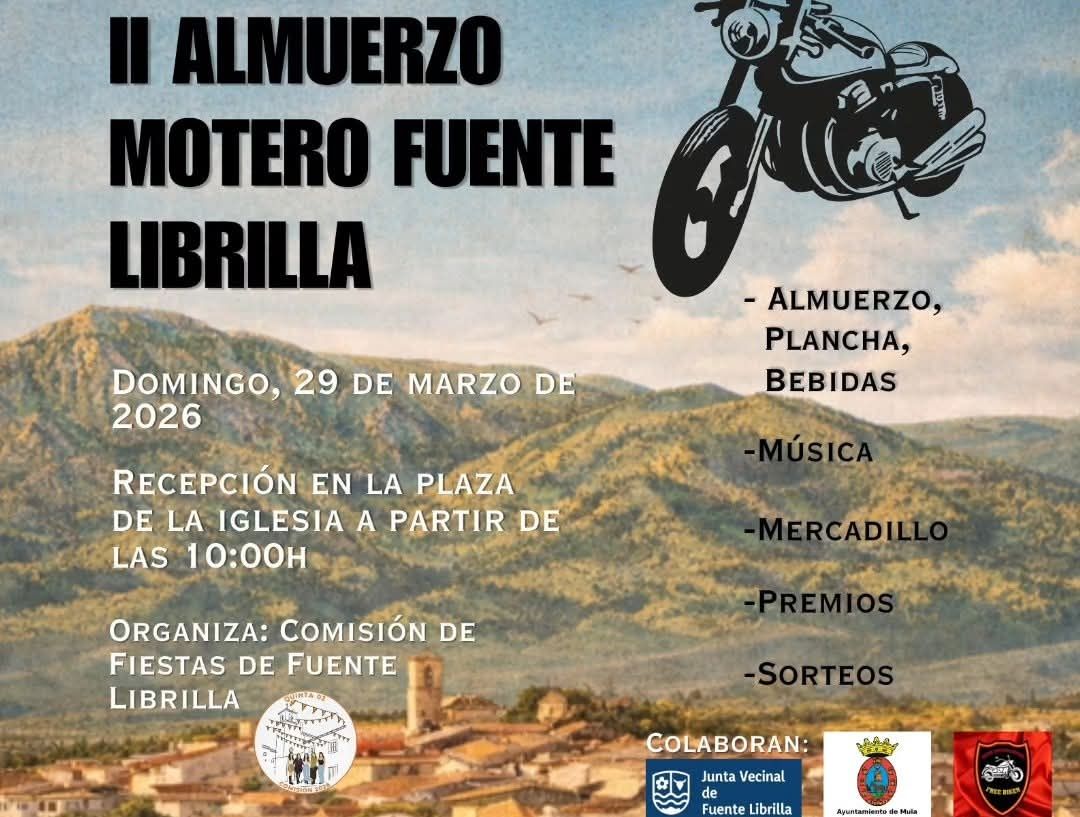 El día 29 de marzo, a partir de las 10 h, se celebrará el almuerzo motero de la pedanía muleña de Fuente Librilla.