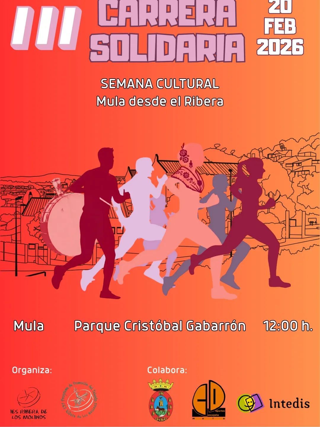 Con motivo de la semana cultural del Instituto comarcal Ribera de los molinos, el próximo 20 de febrero se celebra la III Carrera Solidaria con salida y meta del arque Cristóbal Gabarrón, a las 12:00 h