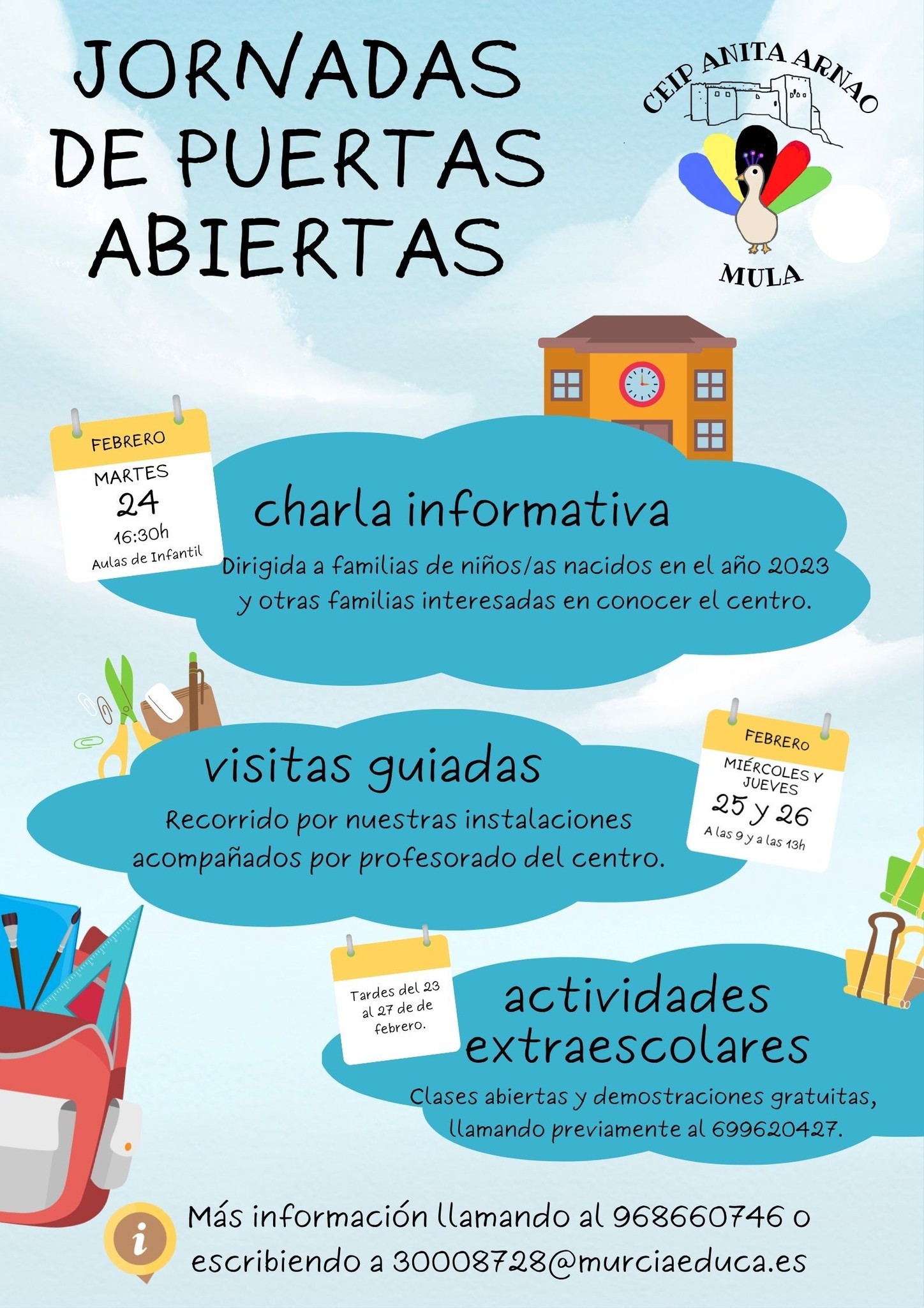 A partir del día 24 de febrero se llevará a cabo unas jornadas de puertas abiertas en el colegio público "Anita Arnao".