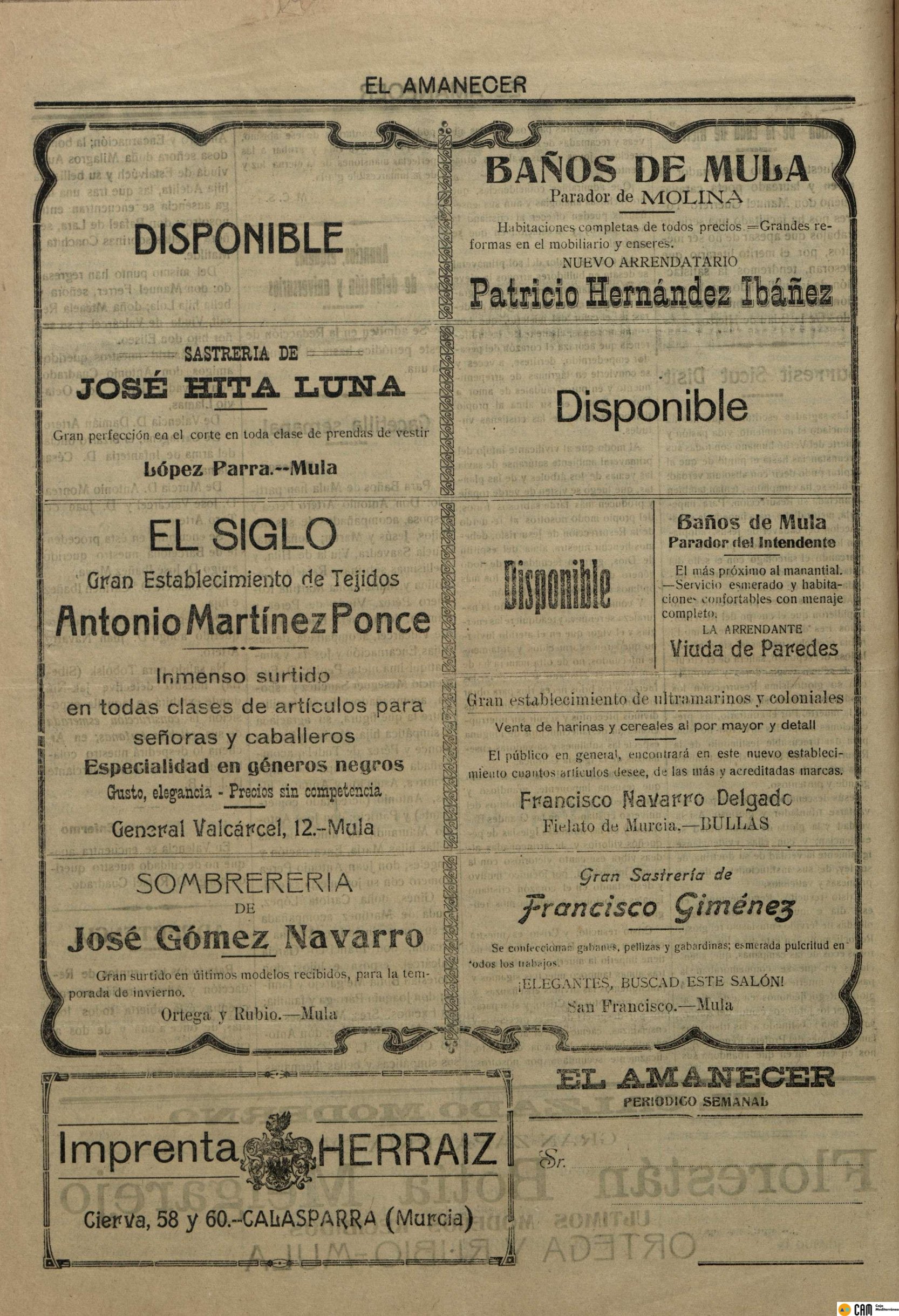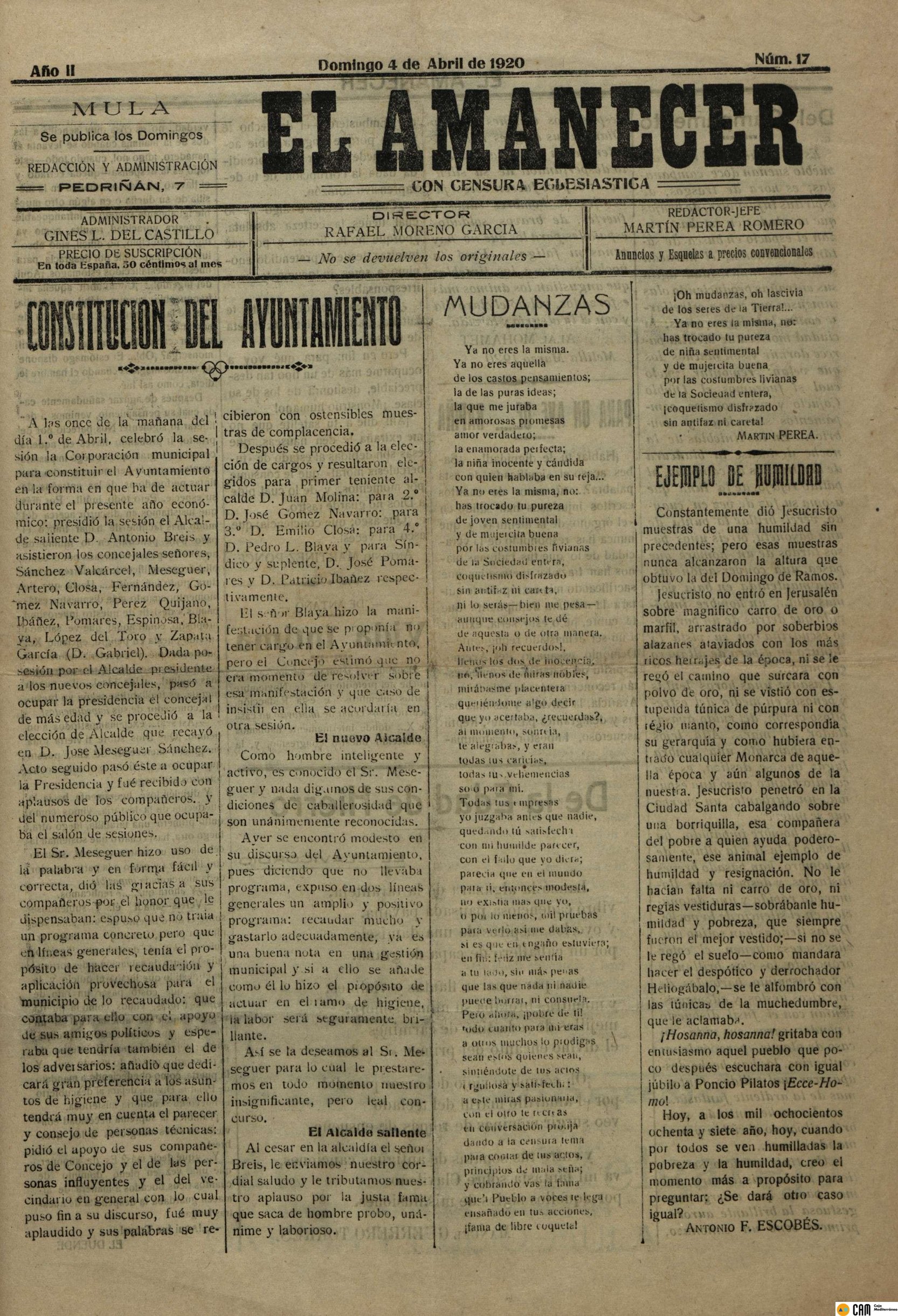 Periodico de Mula el Amanecer nº17 4 de Abril de 1920